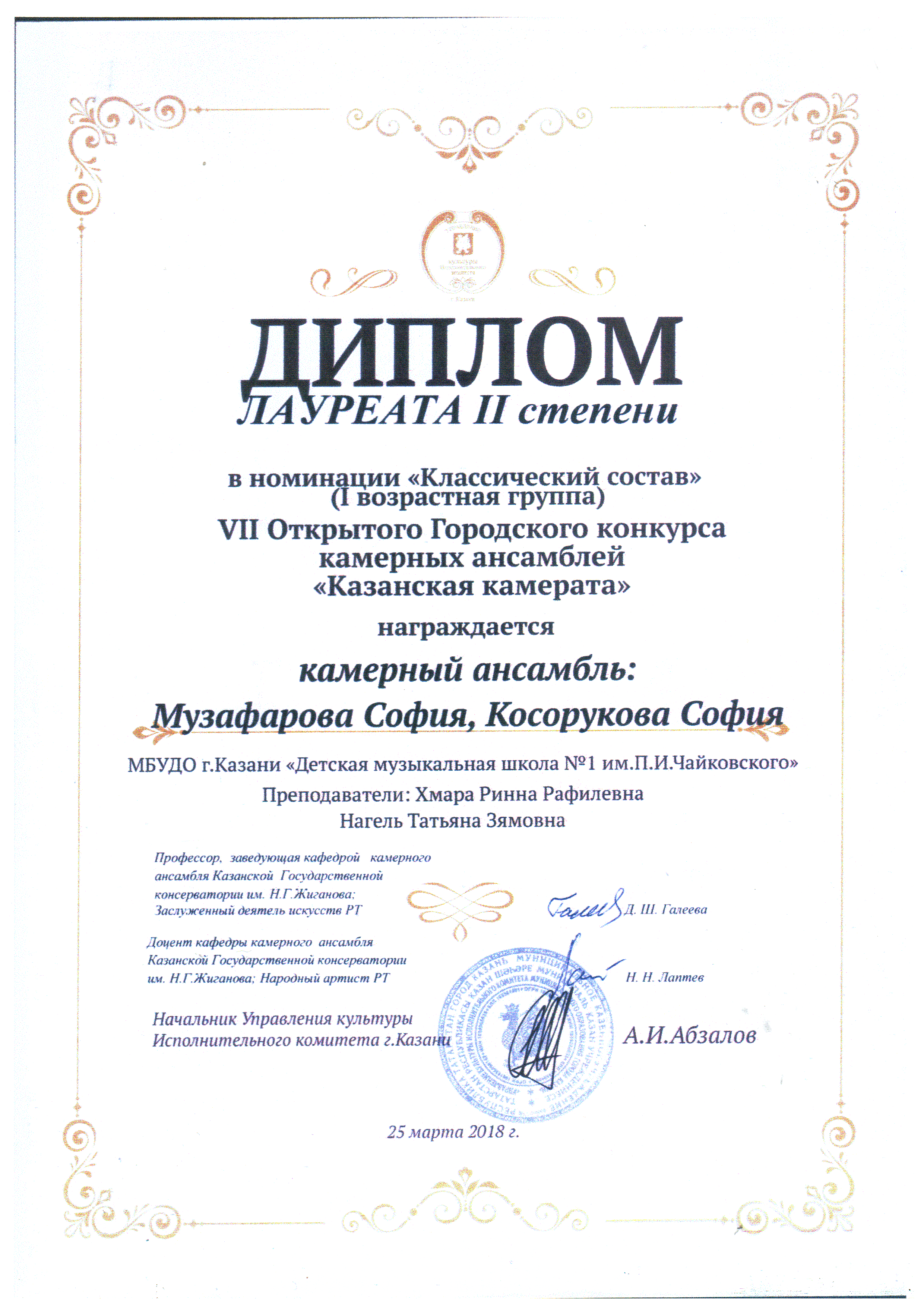 Открытый городской конкурс скрипачей и виолончелистов "Molto" - Гилимханова Сафия, Лауреат I степени;