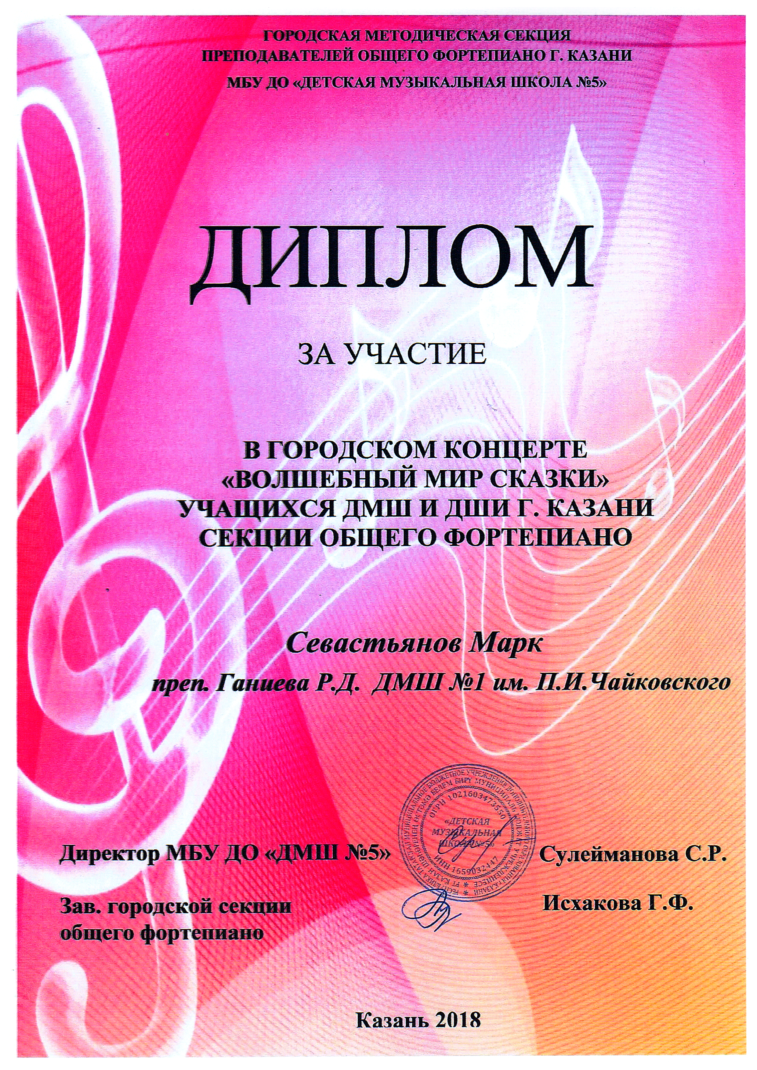 Городской концерт "Волшебный мир сказки" - Севастьянов Марк, Диплом;
