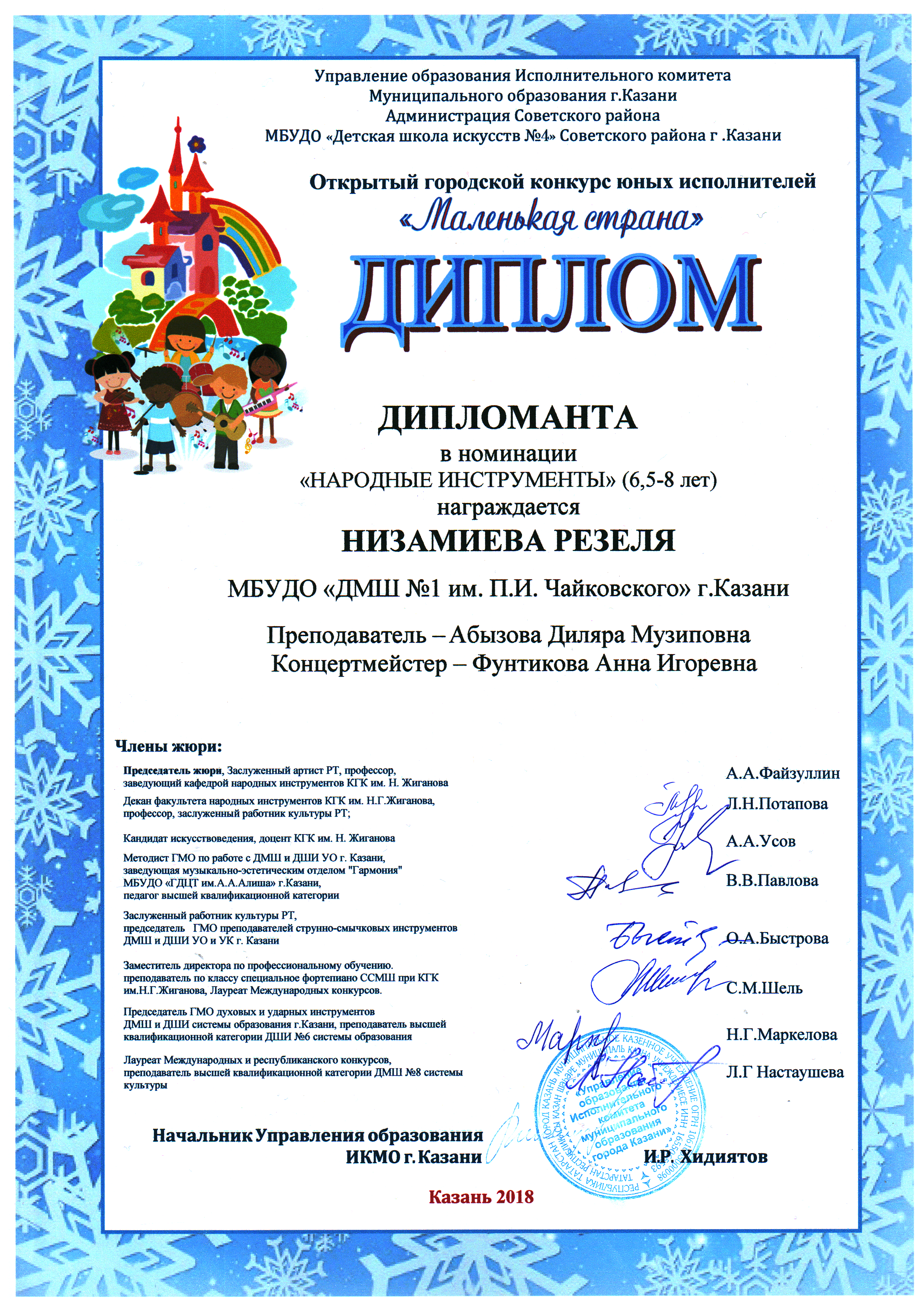 | Короткое название: | МБУДО "Детская музыкальная школа №1 им. П.И. Чайковского" г.Казани |