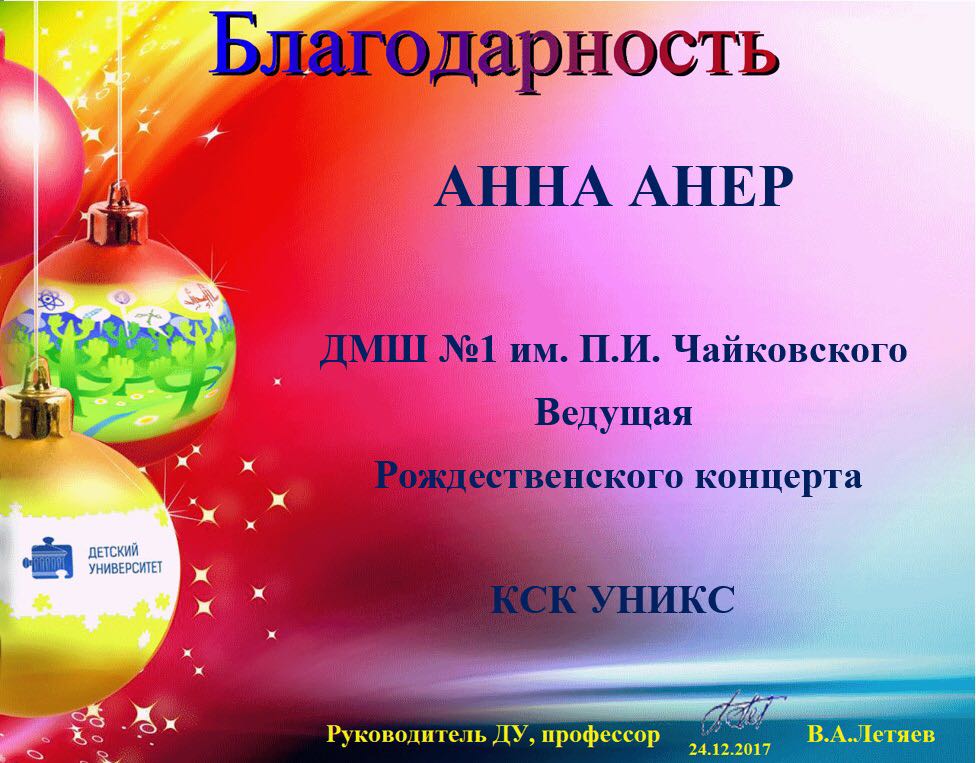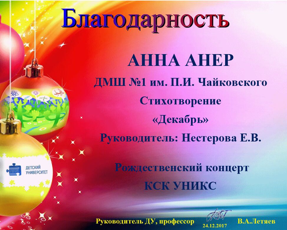 Рождественский концерт КСК "УНИКС" - Анер Аня, Благодарность;