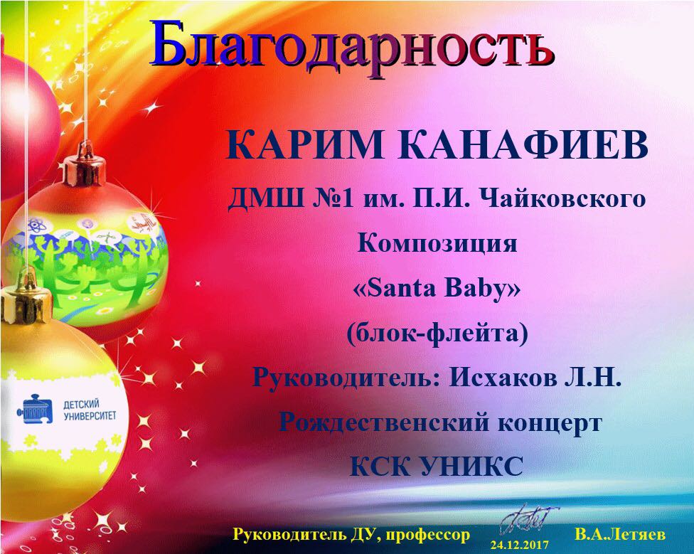 Рождественский концерт КСК "УНИКС" - Канафиев Карим, Благодарность;