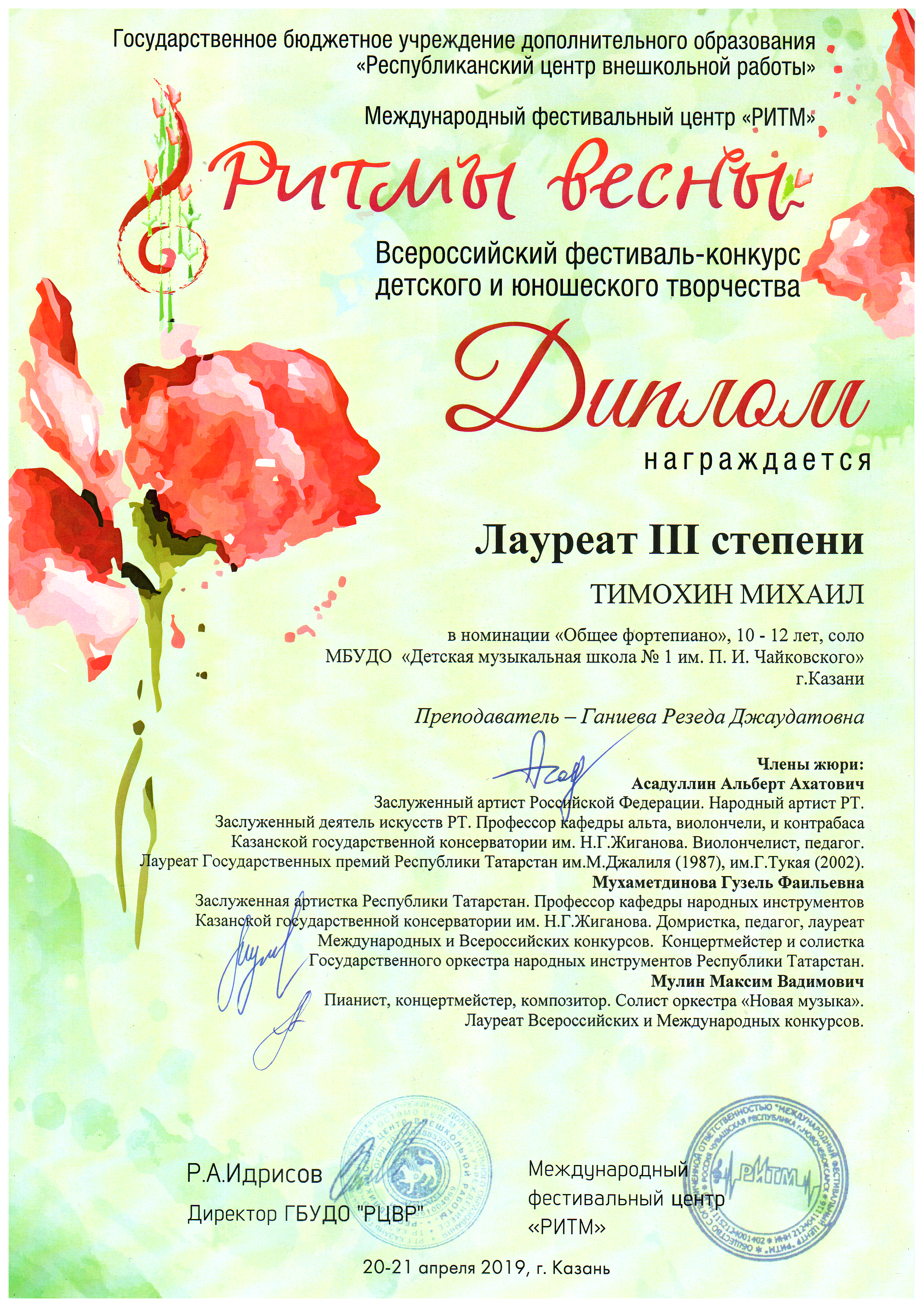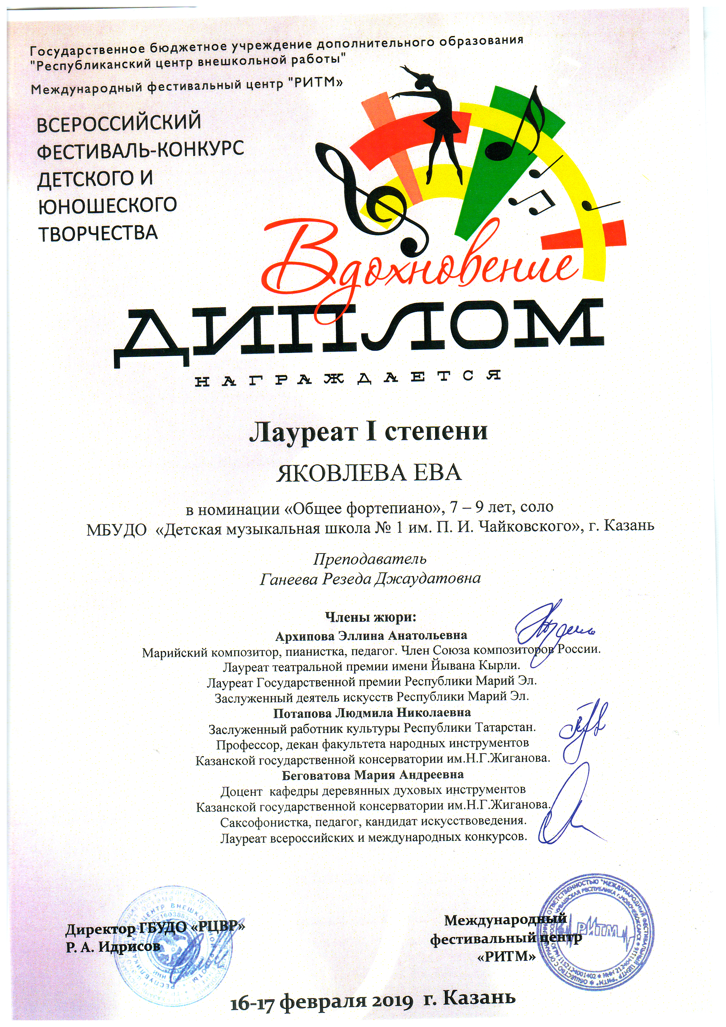 | Короткое название: | МБУДО "Детская музыкальная школа №1 им. П.И. Чайковского" г.Казани |