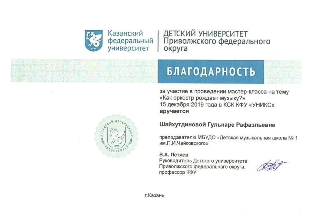 Детский университет ПФО (КСК КФУ "УНИКС") - Благодарность Шайхутдиновой Г.Р.;