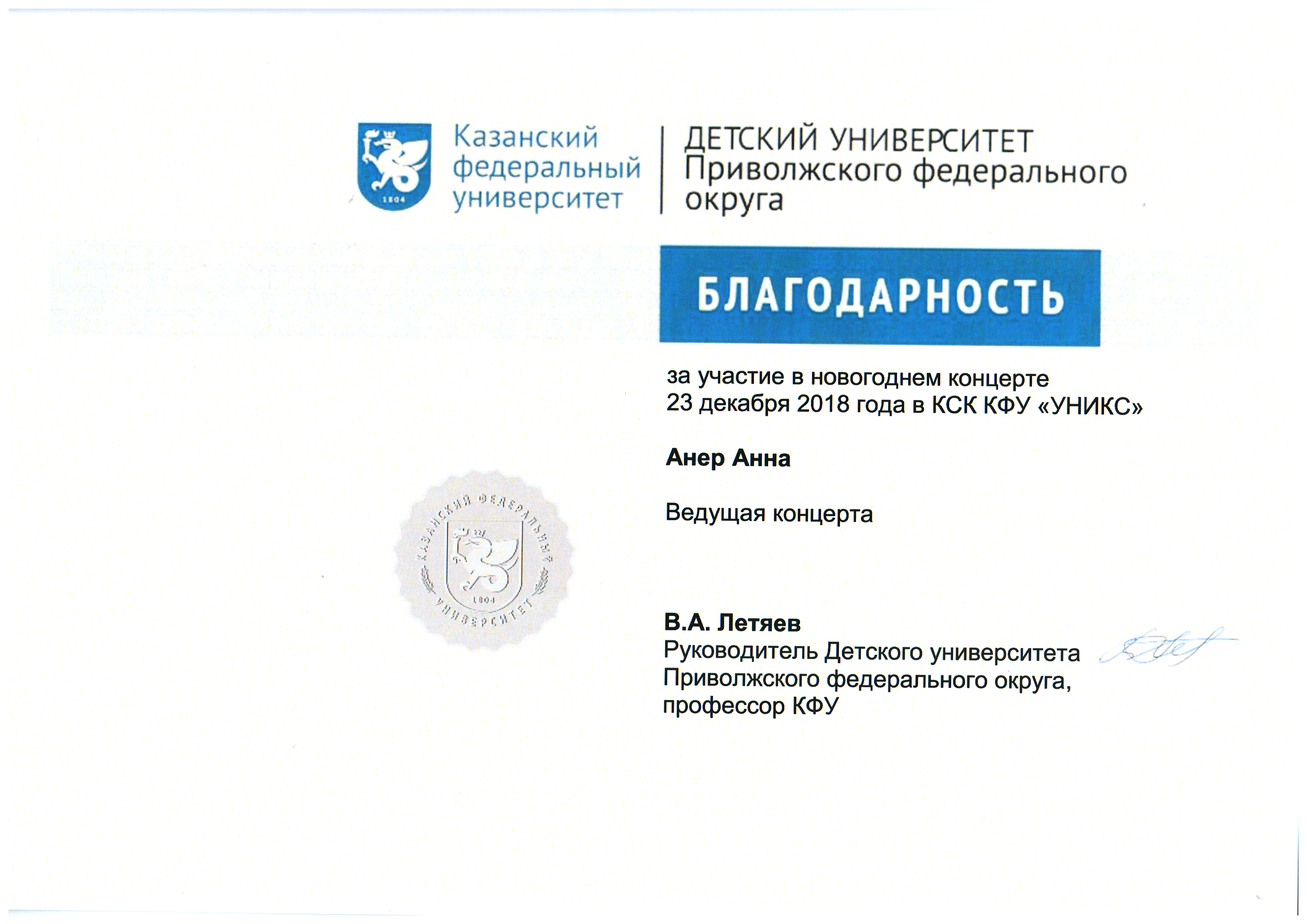 Концерт Казанского камерного оркестра "La Primavera" - Стальмахова Мария, Благодарность;
