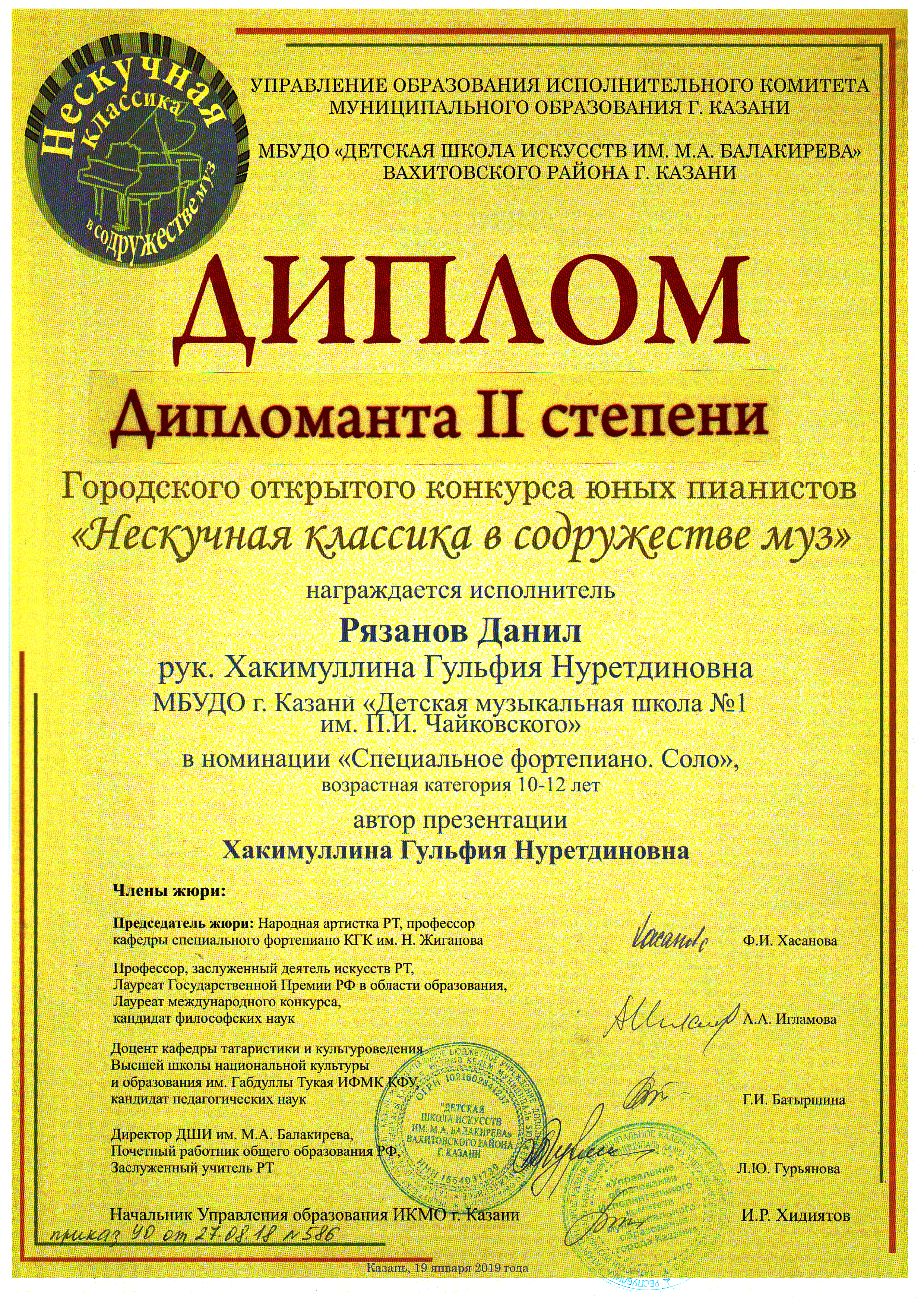 | Короткое название: | МБУДО "Детская музыкальная школа №1 им. П.И. Чайковского" г.Казани |