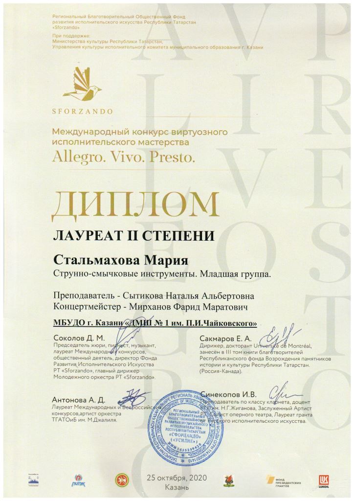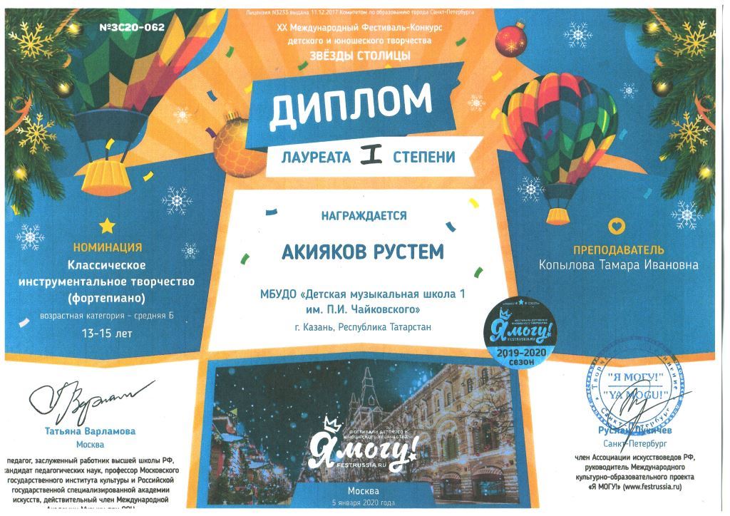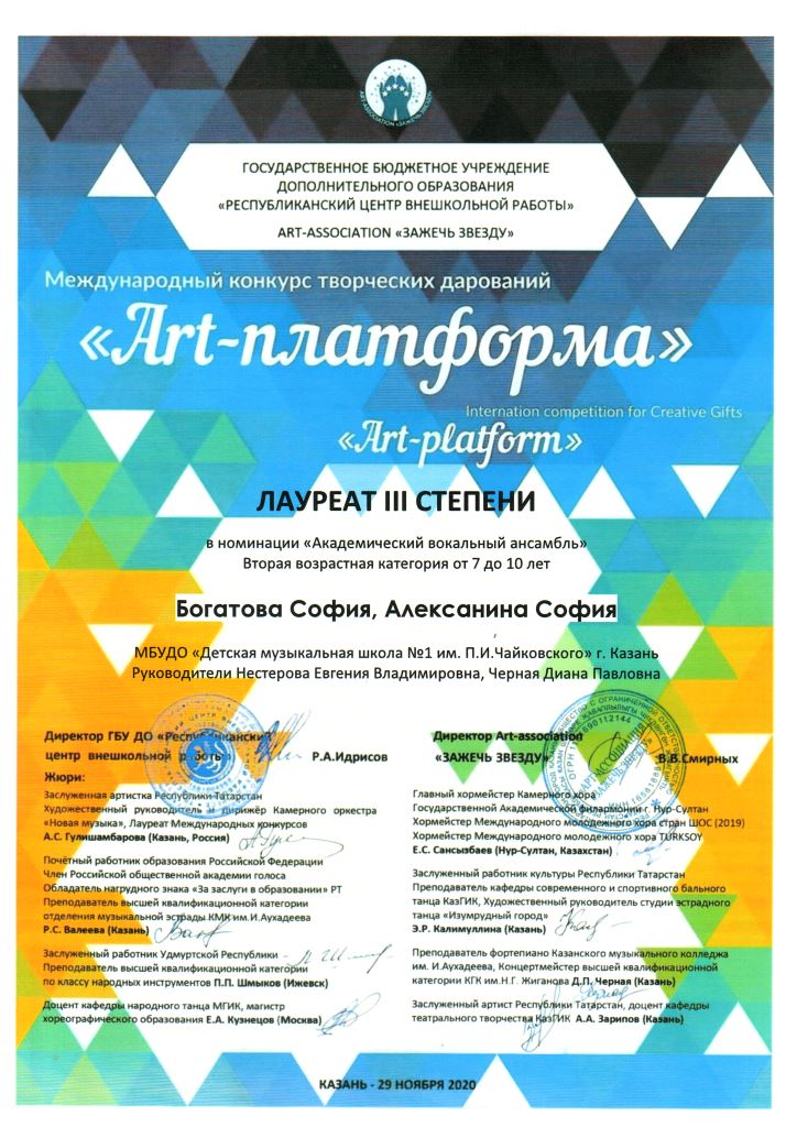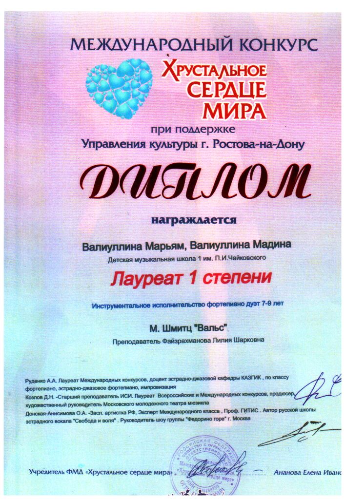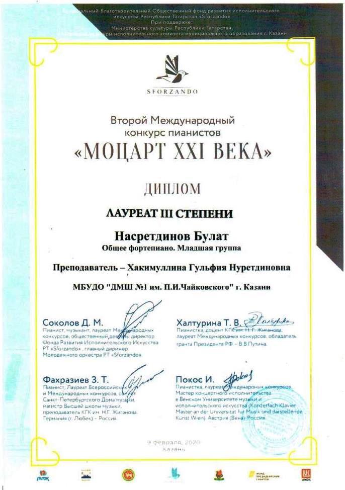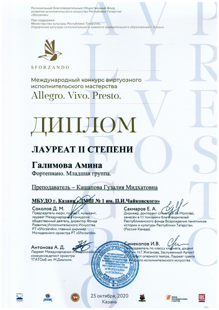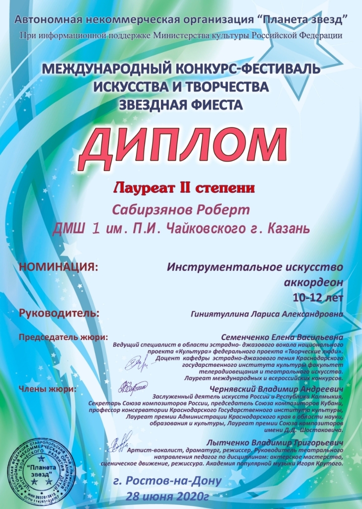 Международный конкурс "ART Весна" - Рязанов Данил, Лауреат II степени, класс Шайхутдиновой Г.Р.;