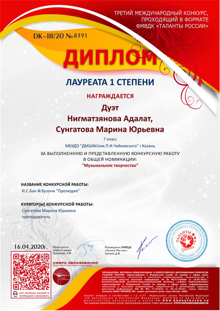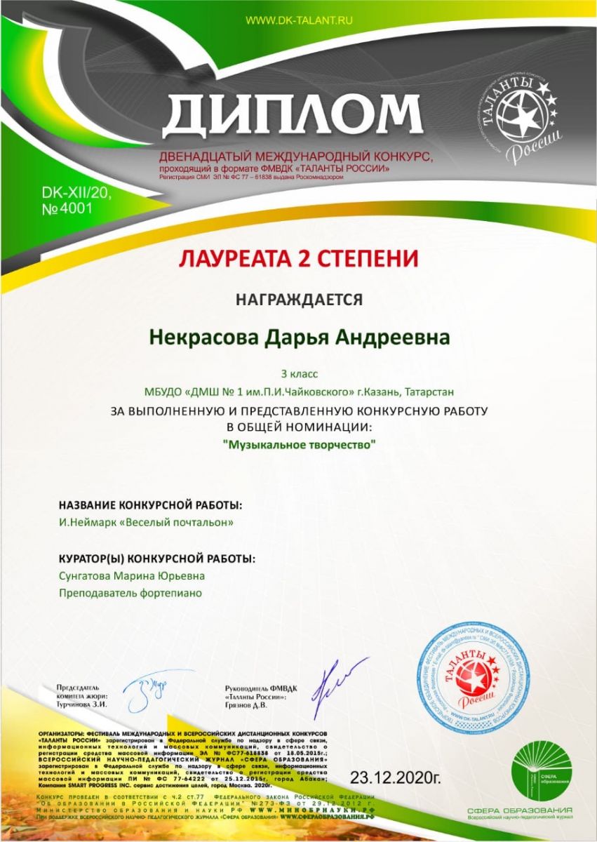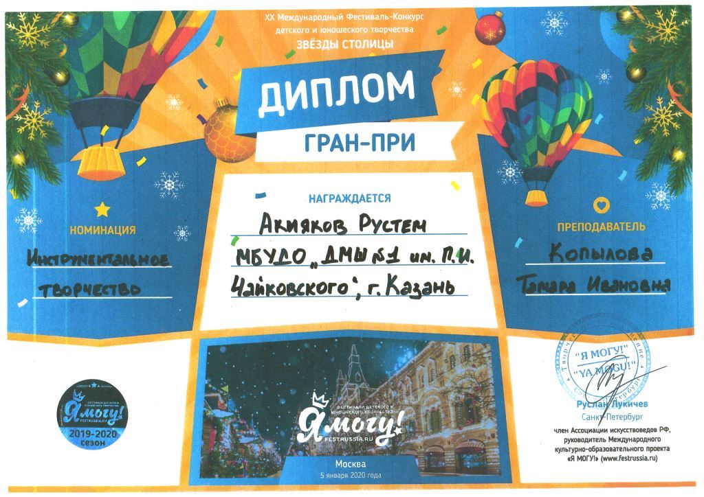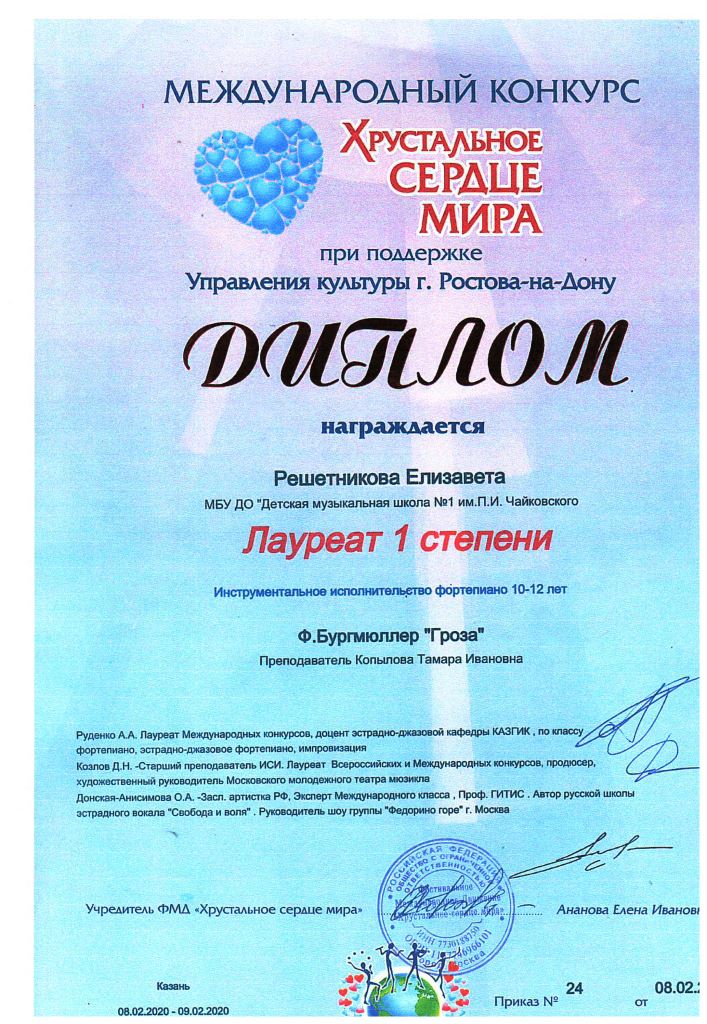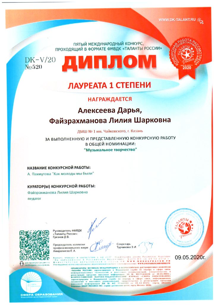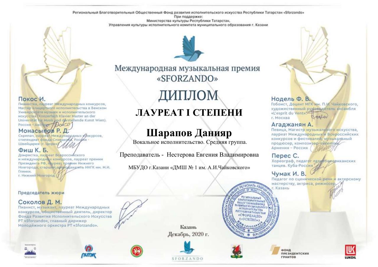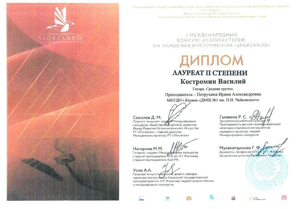 Международный конкурс "ART Весна" - Рязанов Данил, Лауреат II степени, класс Шайхутдиновой Г.Р.;