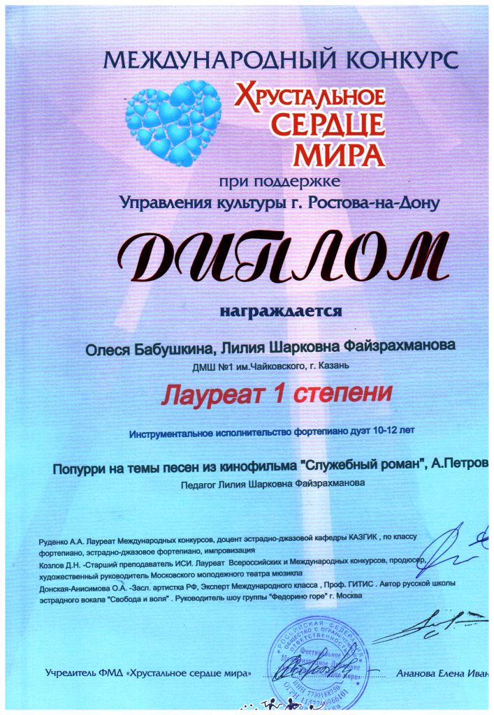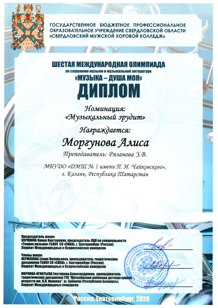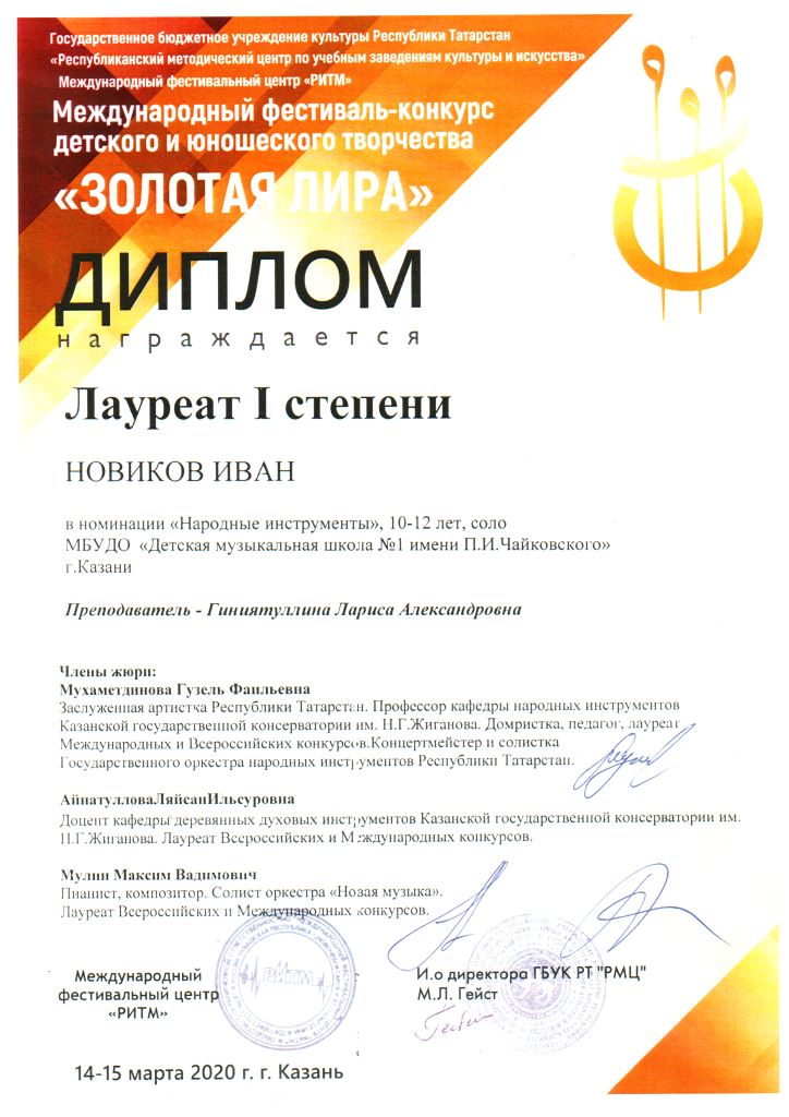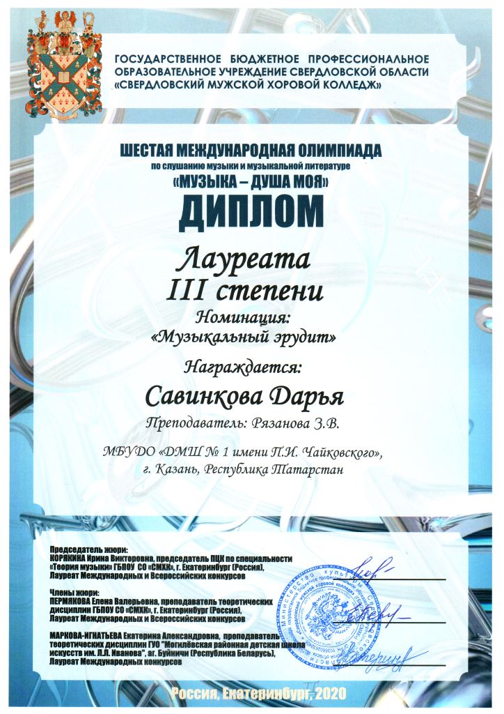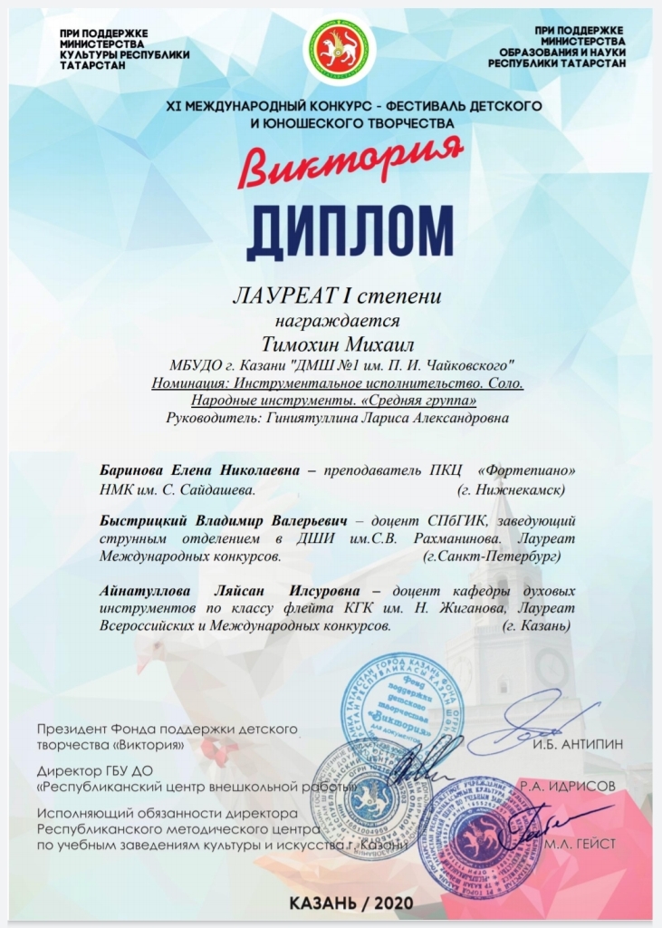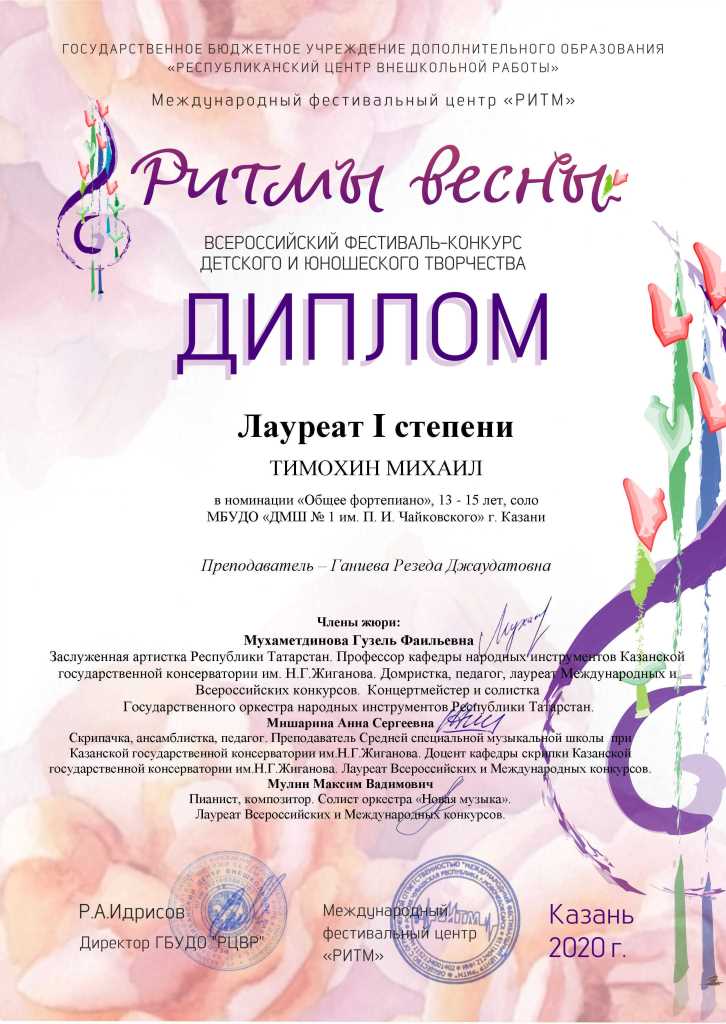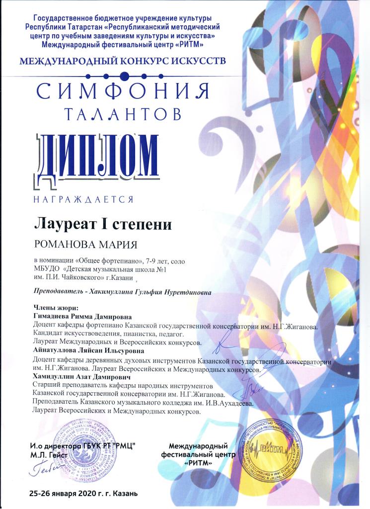 | Короткое название: | МБУДО "Детская музыкальная школа №1 им. П.И. Чайковского" г.Казани |