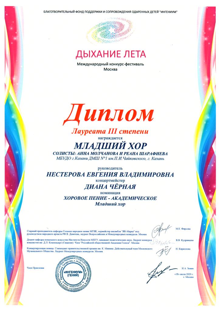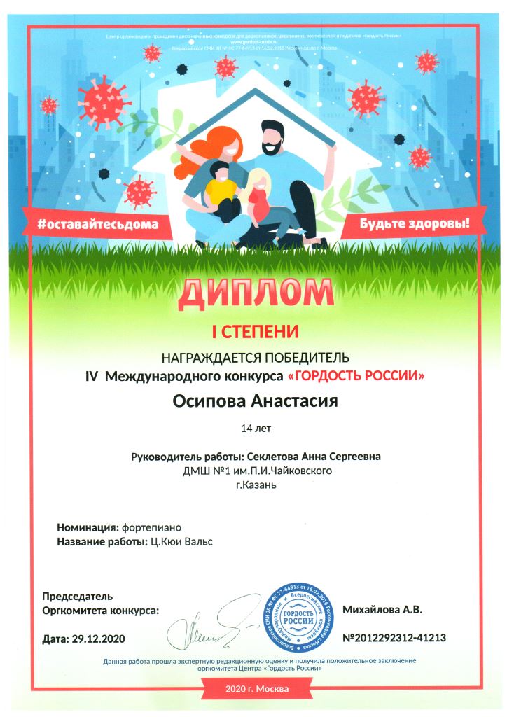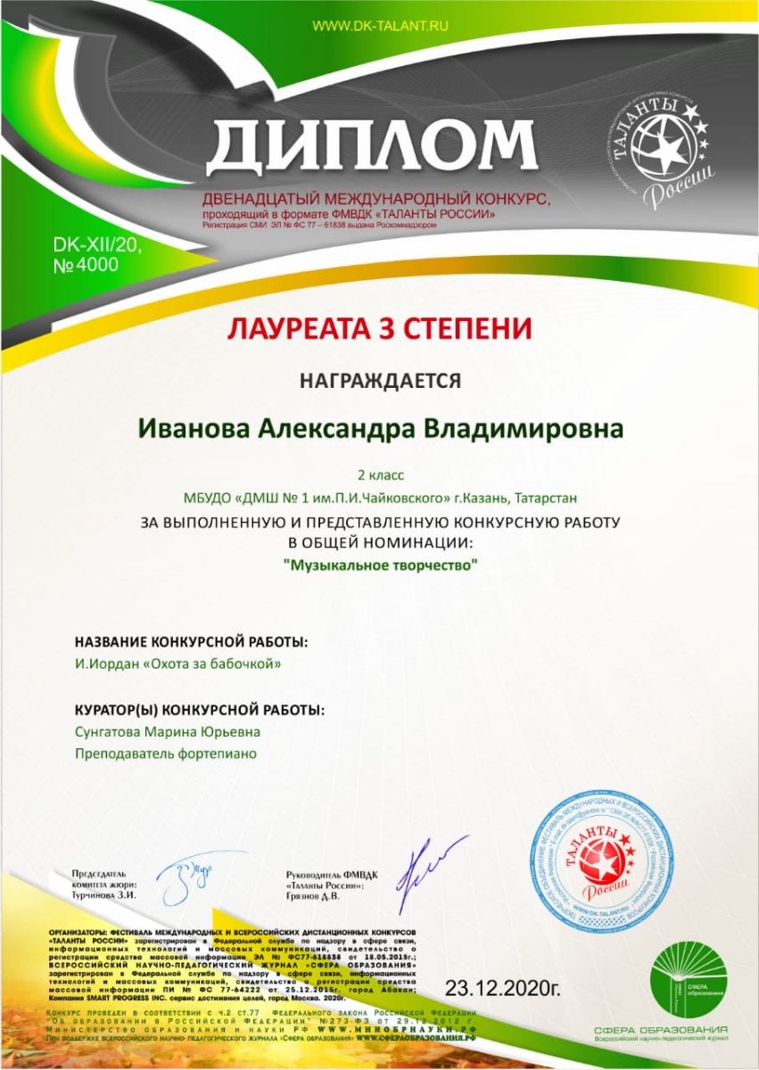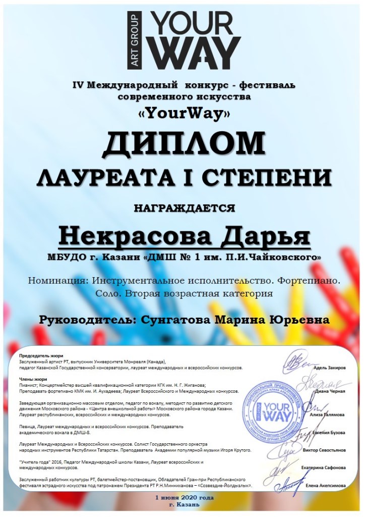 IV Международного конкурса "Ты гений" - Павлова Светлана, Лауреат I степени, класс Сунгатовой М.Ю.;