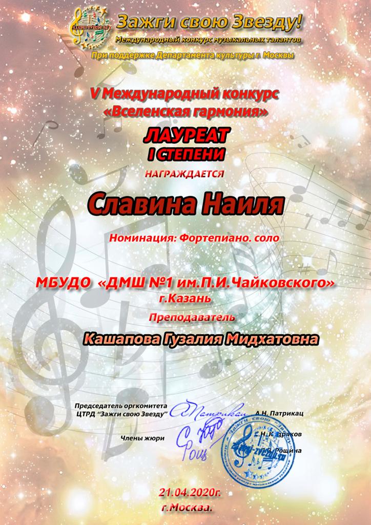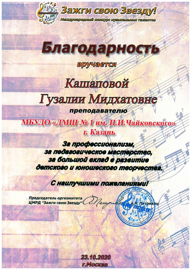 Международный конкурс музыкалшьных талантов "Зажги свою звезду" - Благодарность Кашаповой Г.М.;