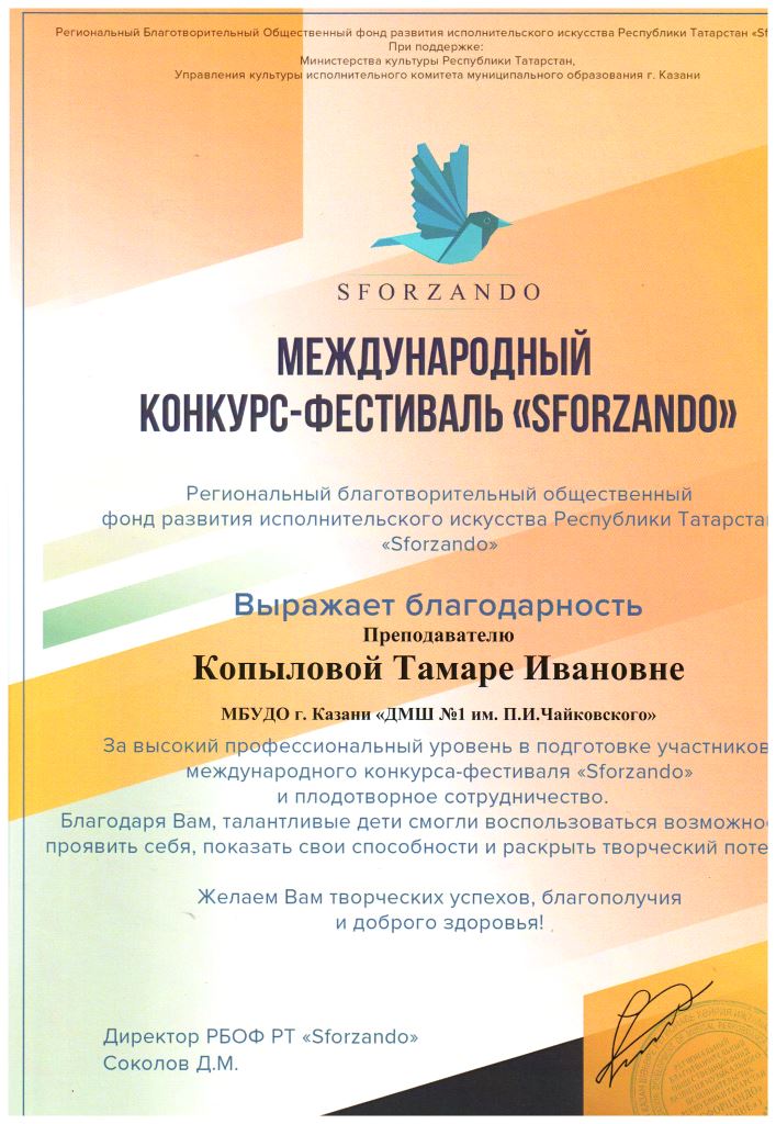 Международный конкурс-фестиваль "SFORZANDO" - Благодарность Копыловой Т.И.;