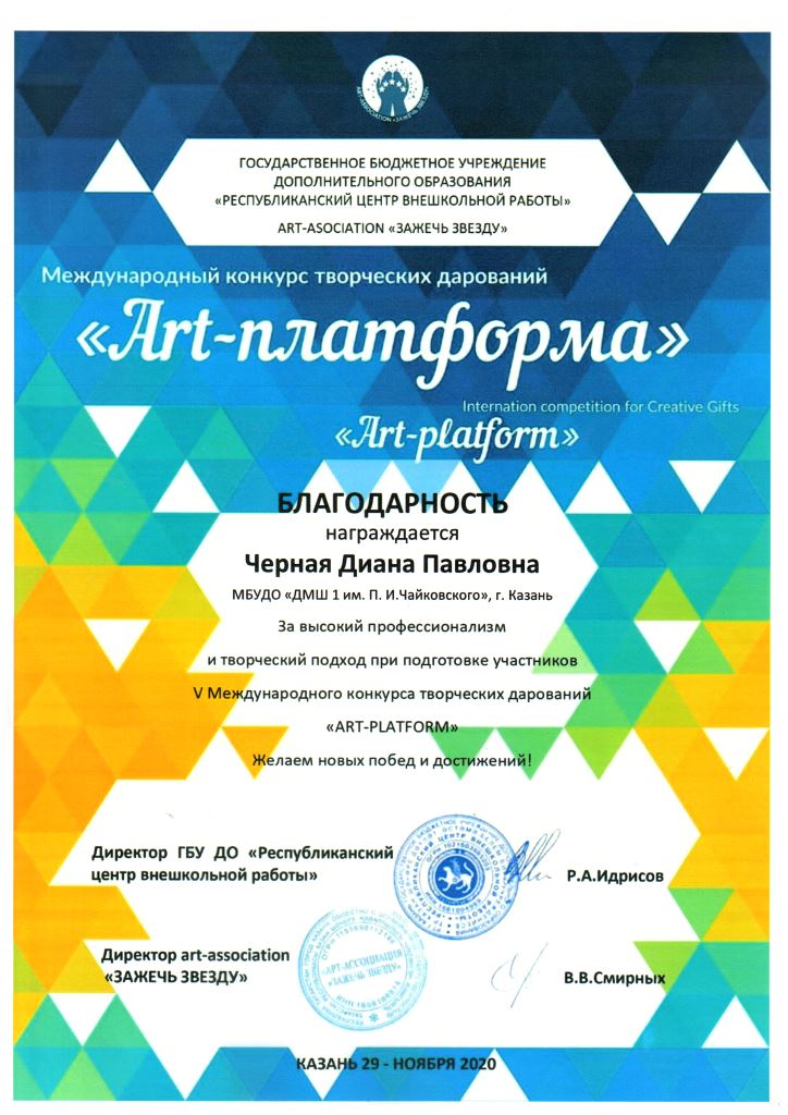 Международный конкурс творческих дарований "Art-платформа" - Благодарность Черной Д.П.;