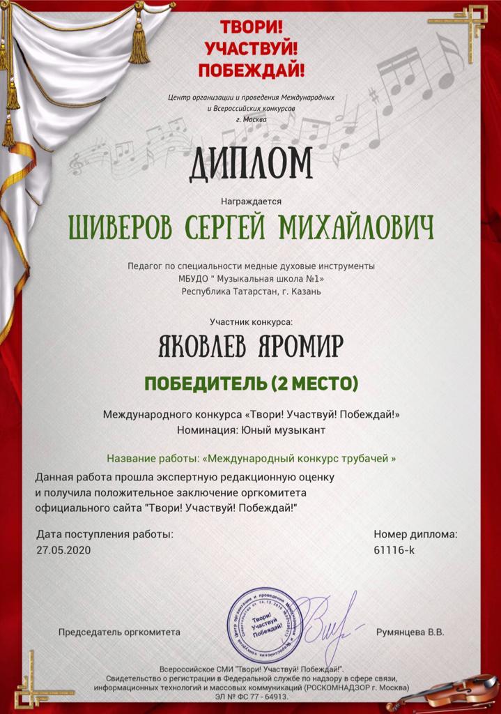 Международный конкурс "Твори, участвуй, побеждай" - Благодарность Шиверову С.М.;