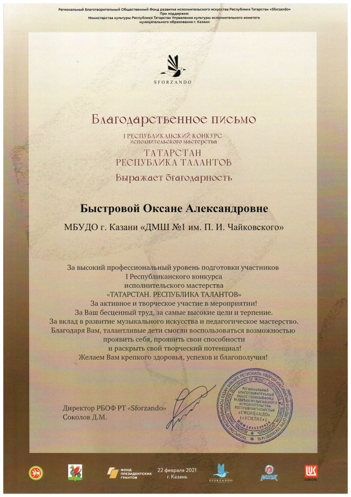 IV Международный конкурс пианистов "Моцарт XXI века" - Благодарность Сунгатовой М.Ю.;