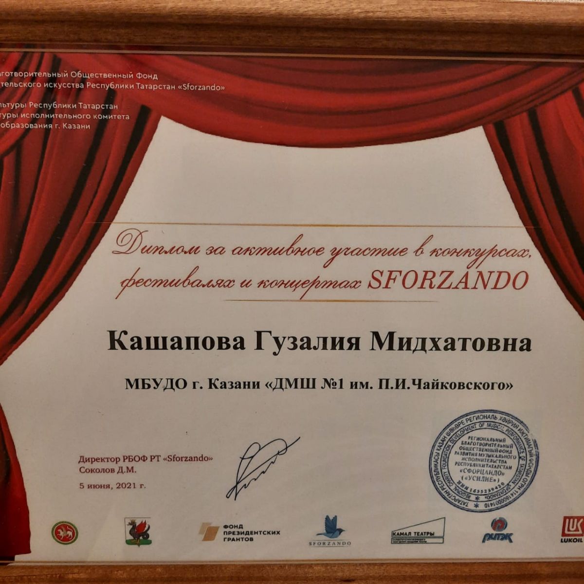 I Международный конкурс пианистов "PianoForte" - Благодарность Кашаповой Г.М.;