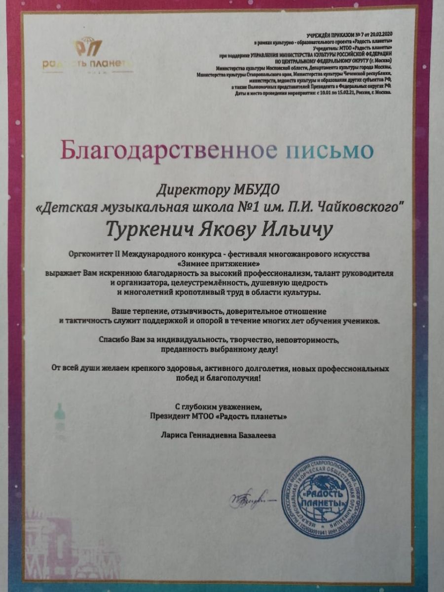 ДШИ г.Зеленодольска - Благодарность Копыловой Т.И.;