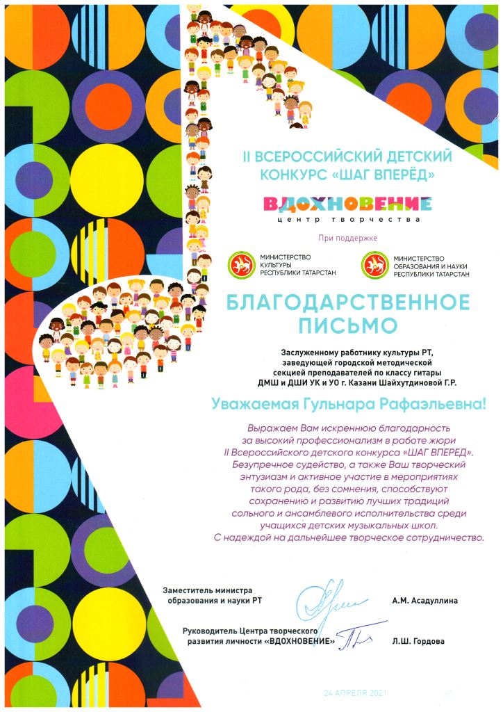 II Всероссийский детский конкурс "Шаг вперёд" - Благодарность Абызовой Д.М.;