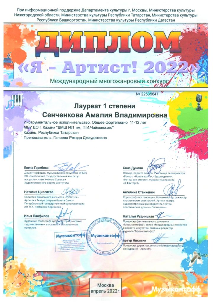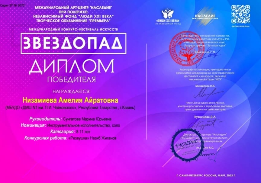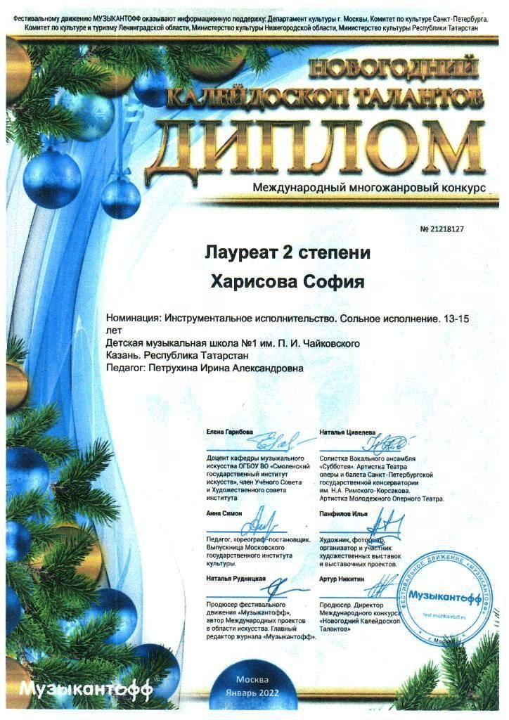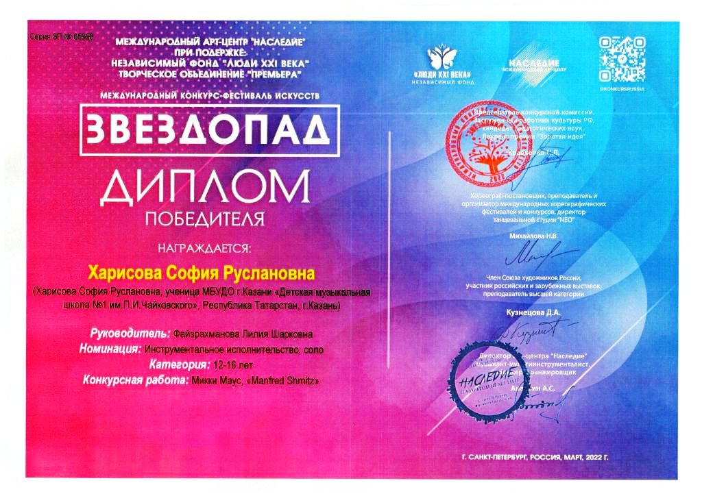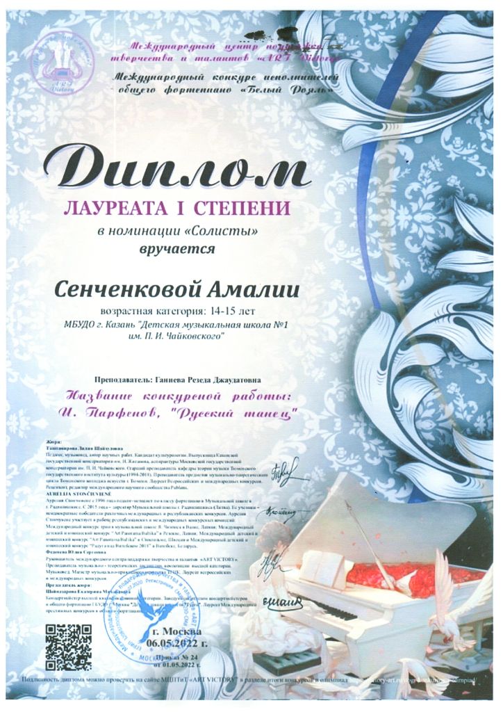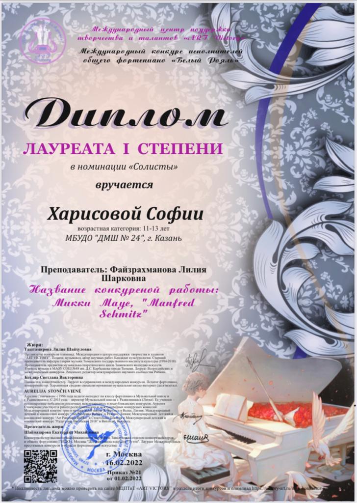 Международный фестиваль-конкурс "Арт-магия" - Федотова София, Победитель, клаксс Шайхутдиновой Г.Р.;