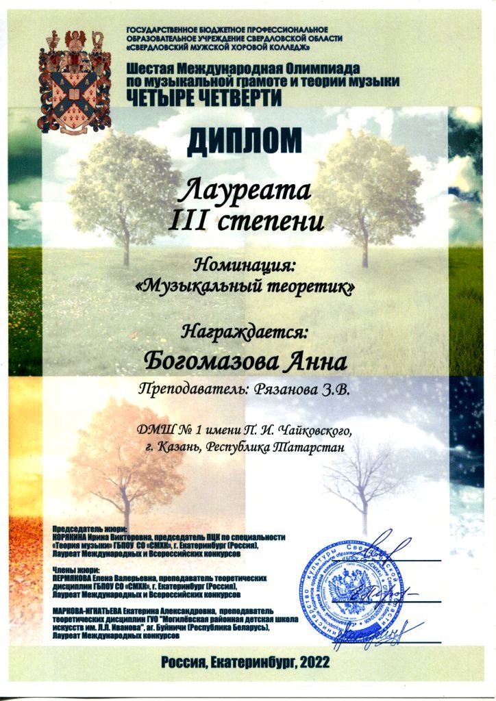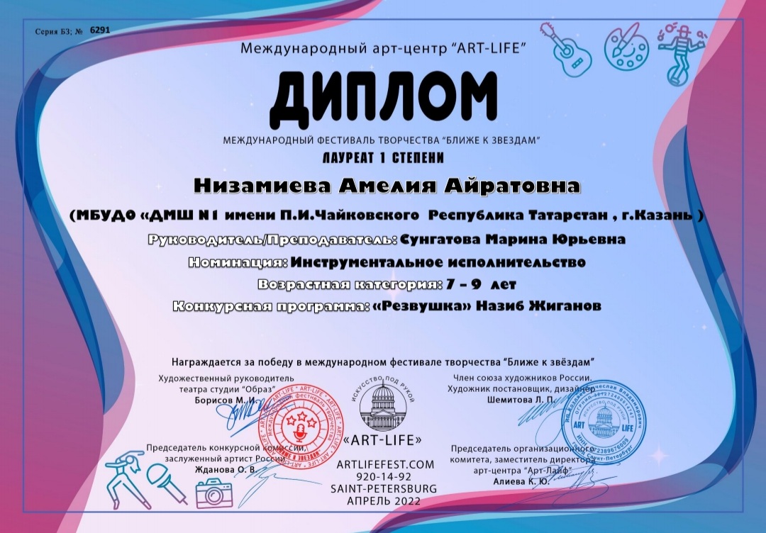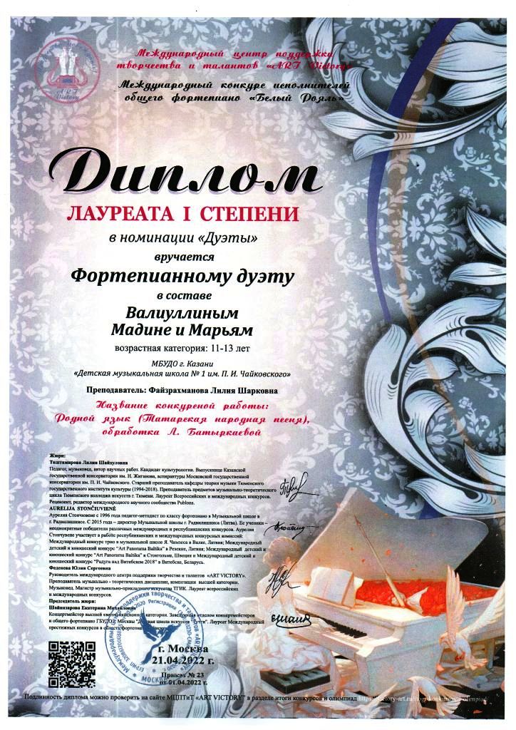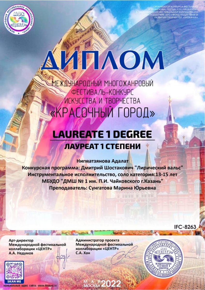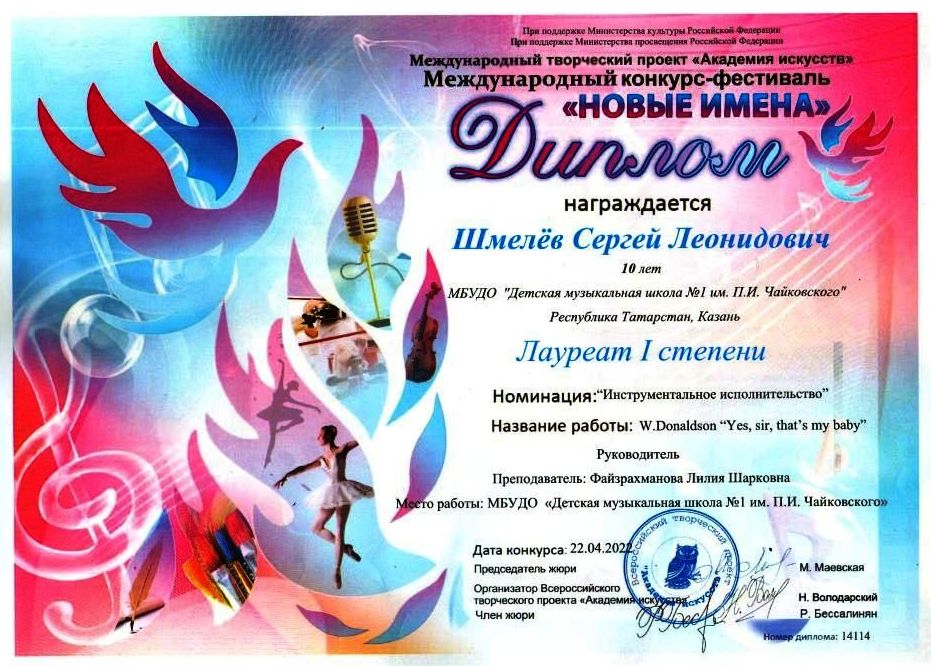 Международный фестиваль-конкурс "Арт-магия" - Федотова София, Победитель, клаксс Шайхутдиновой Г.Р.;