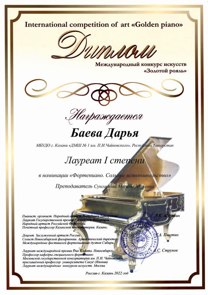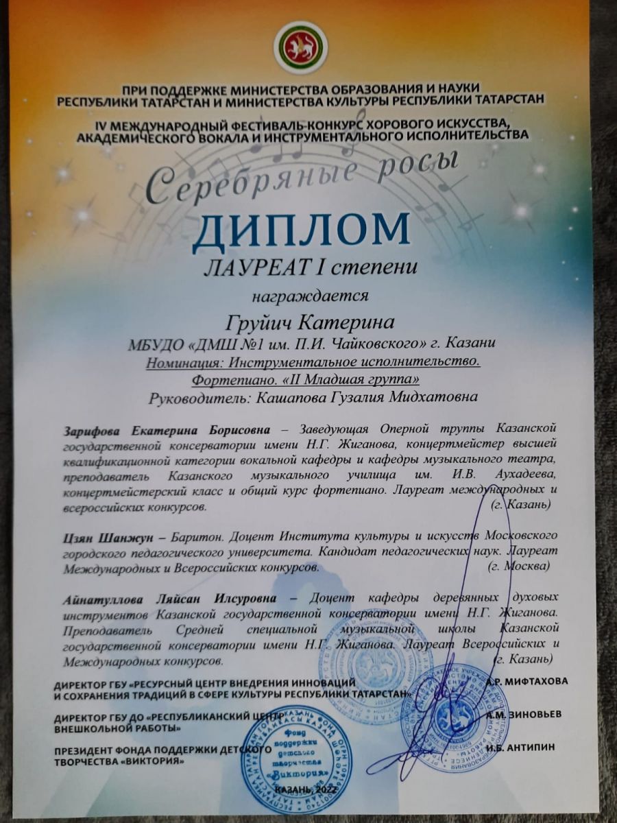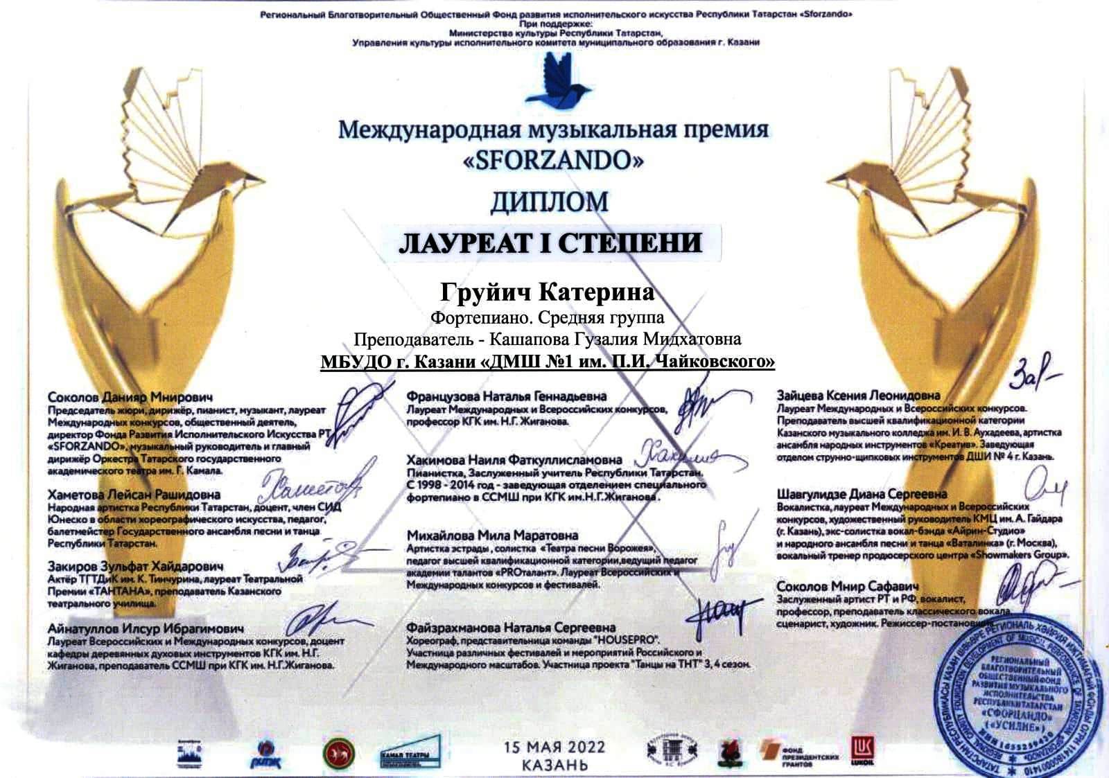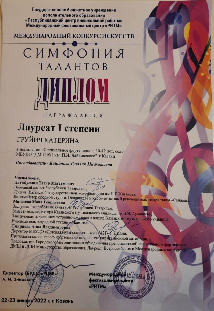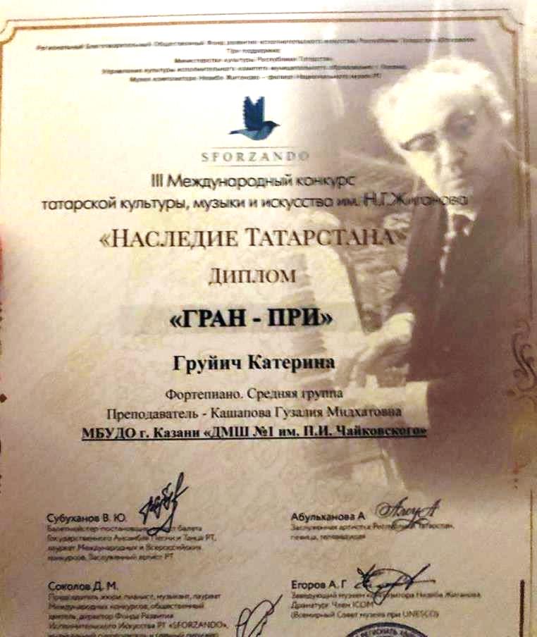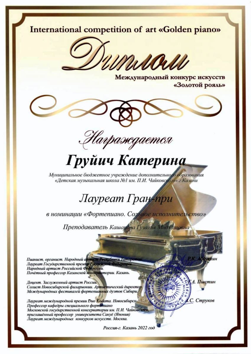 Международный конкурс искусств "Золотой рояль" - Груйич Катерина, Гран-при, класс Кашаповой Г.М.;