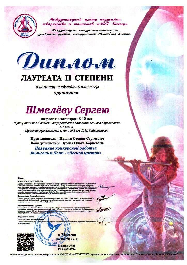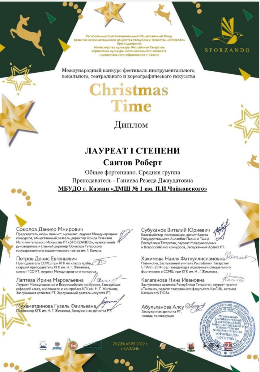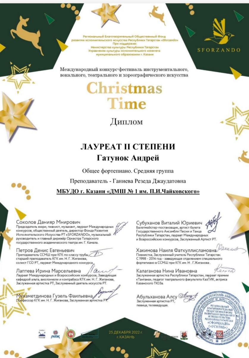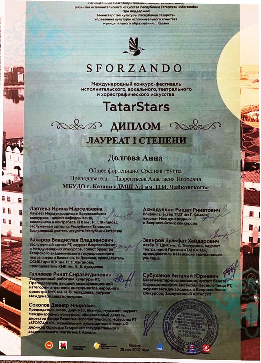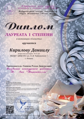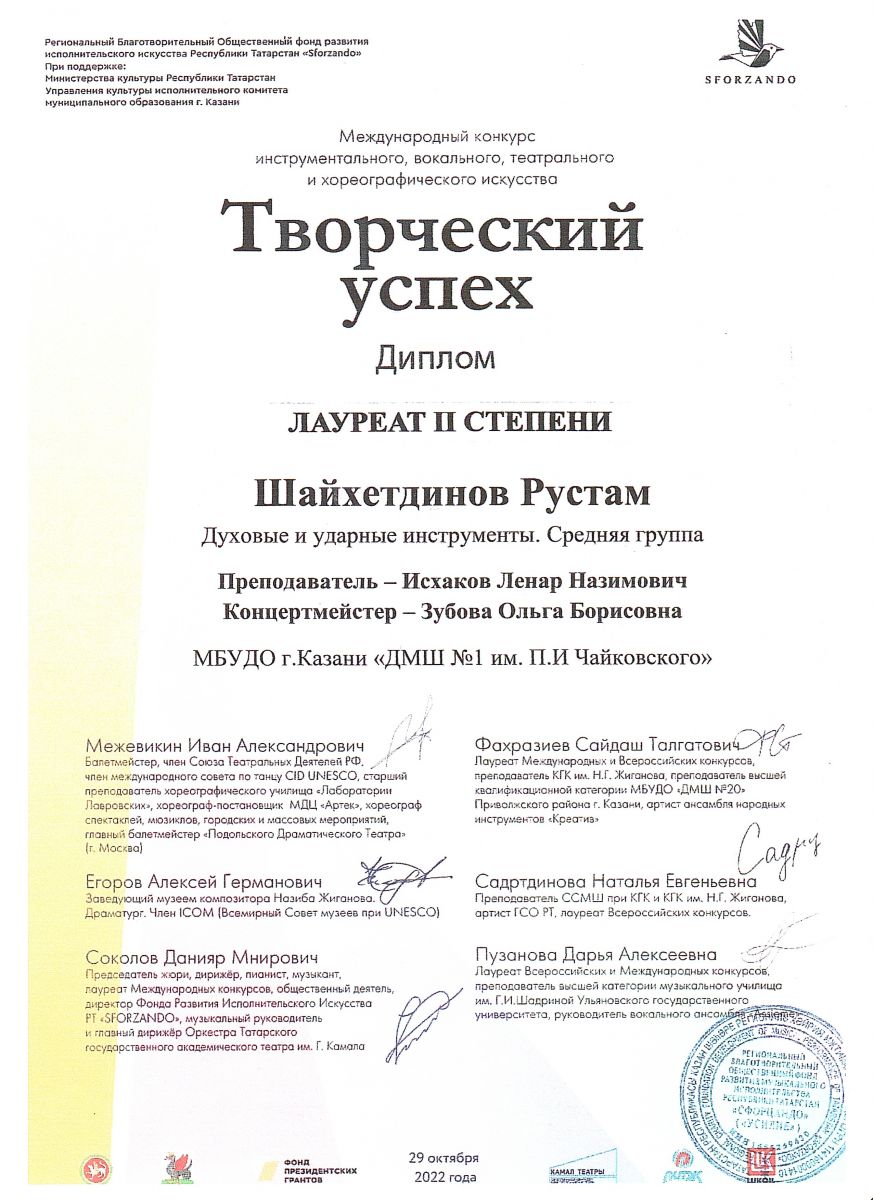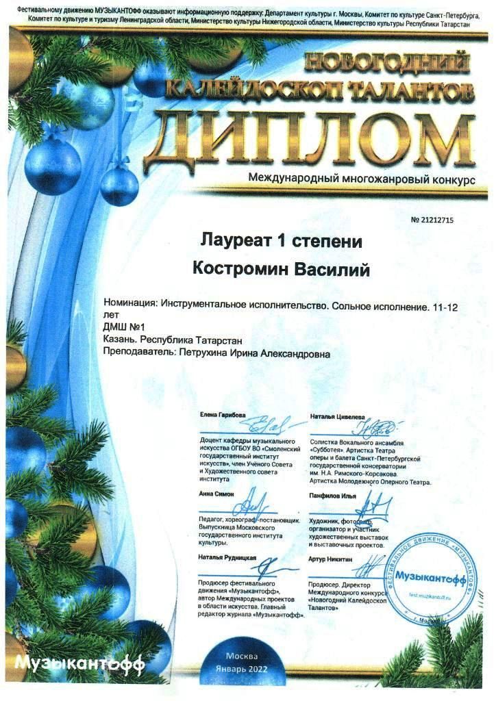 Международная музыкальная премия "SFORZANDO" - Приходцев К. Лауреат I степени, класс Быстровой О.А.;