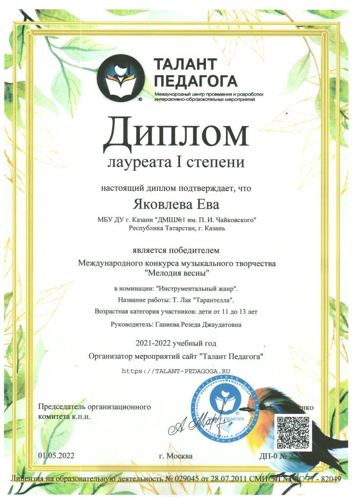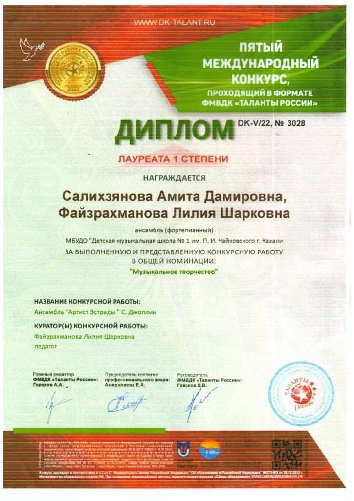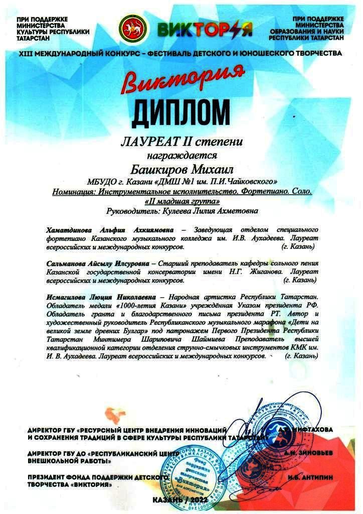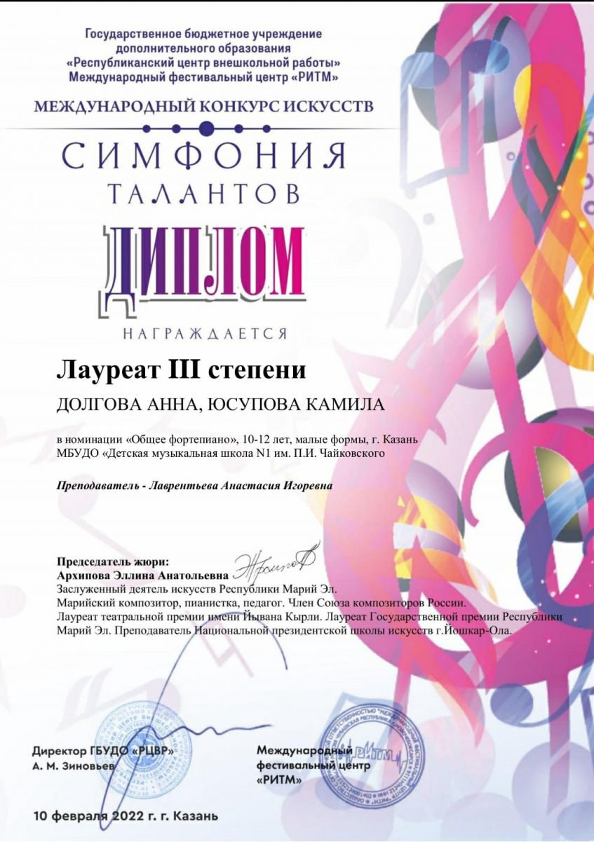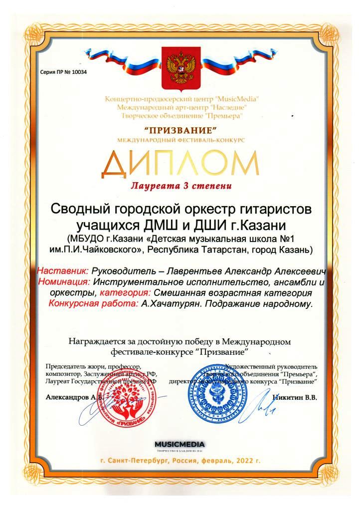 | Короткое название: | МБУДО "Детская музыкальная школа №1 им. П.И. Чайковского" г.Казани |
