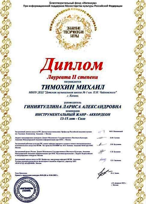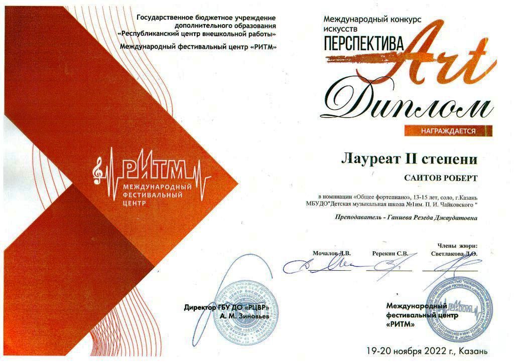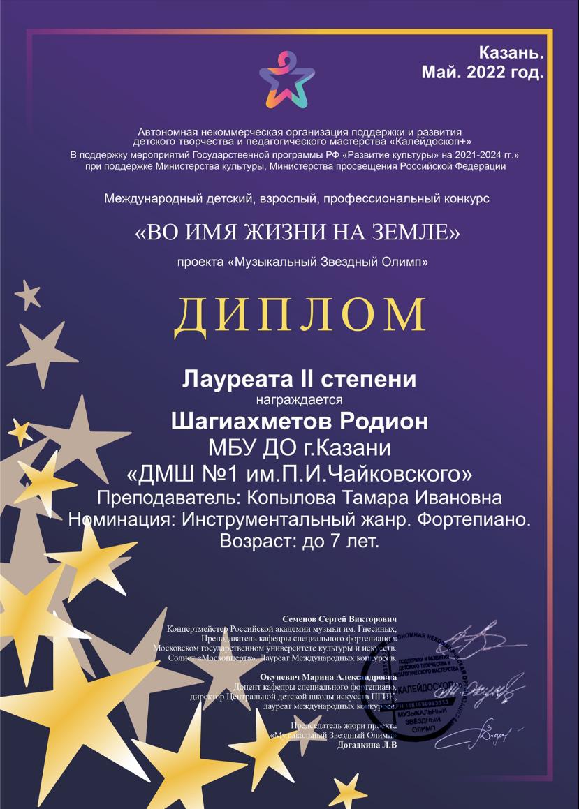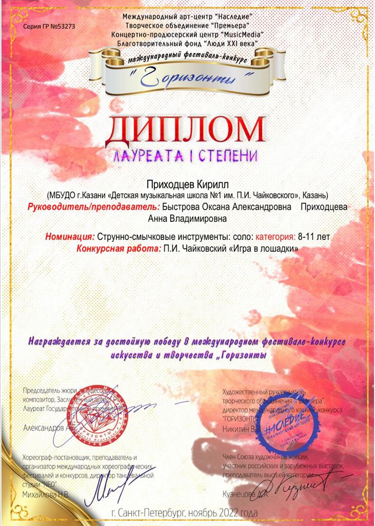 Международный фестиваль-конкурс "Горизонт" - Приходцев Д., Лауреат II степени, класс Быстровой О.А.;