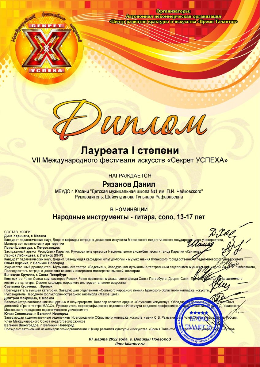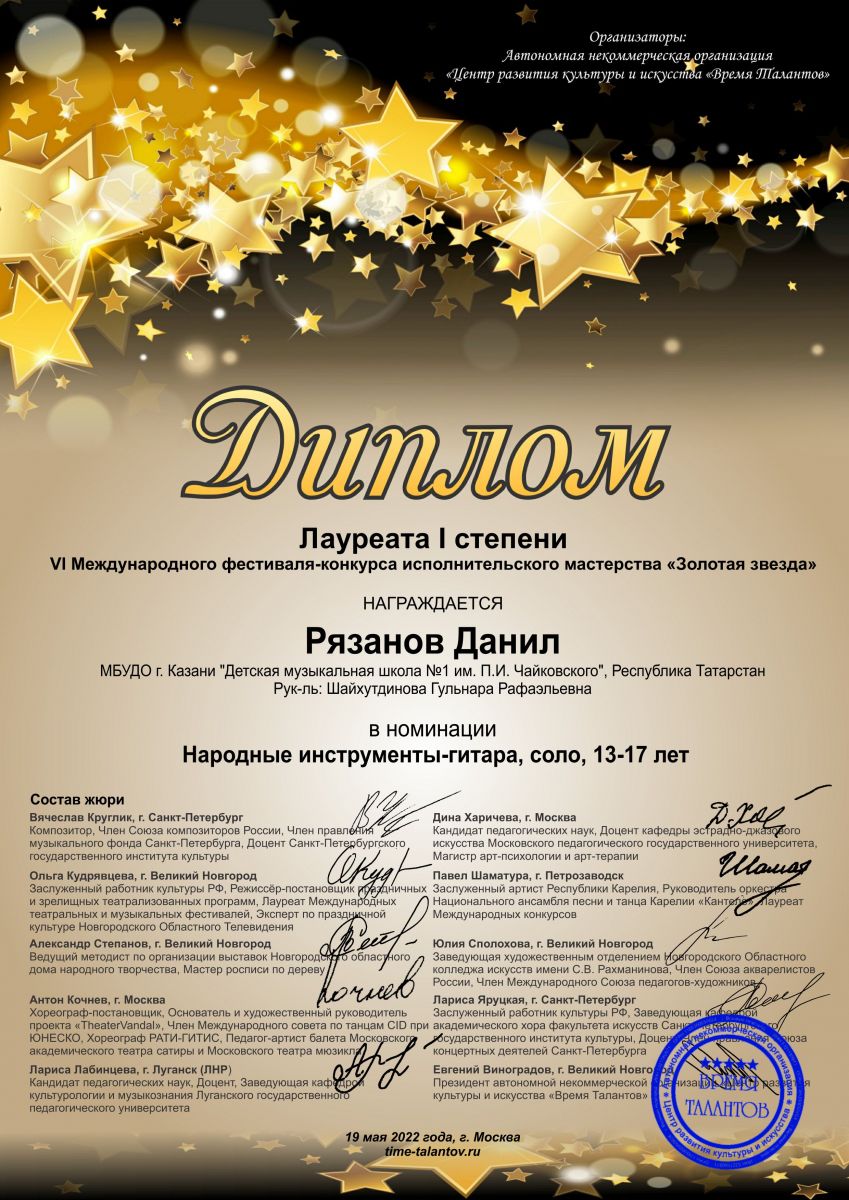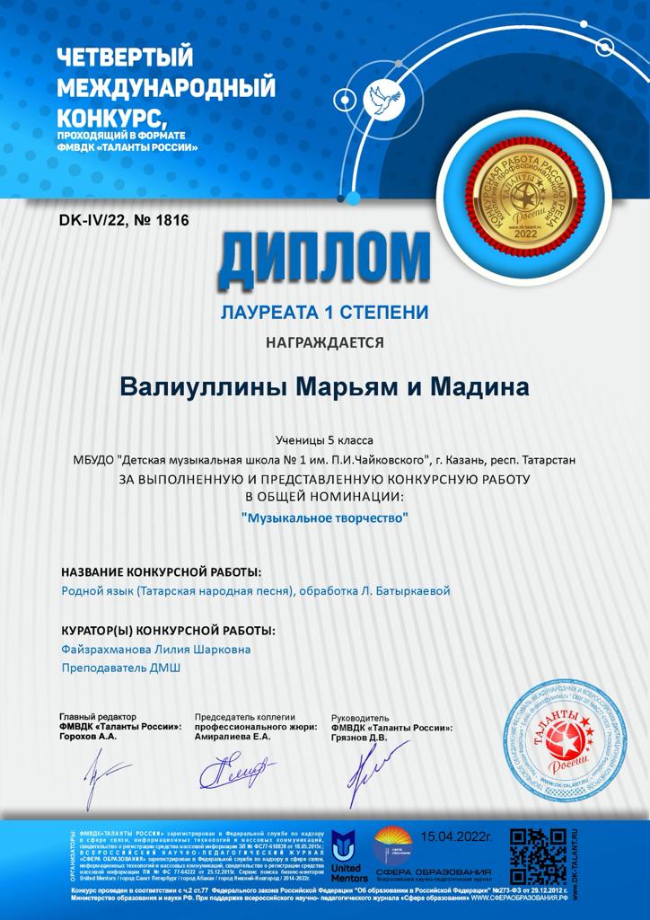 V Международный конкурс "Гордость России" - Баева Дарья, Диплом I степени, класс Сунгатовой М.Ю.;