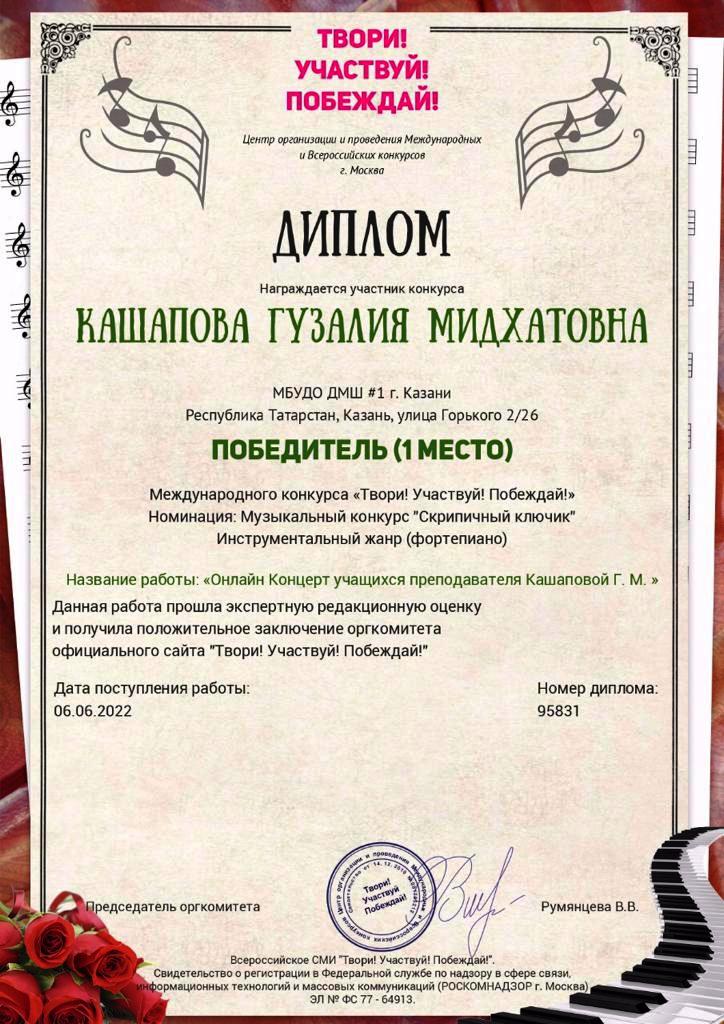 Международный конкурс "Твори! Участвуй! Побеждай" - Кашапова Г.М., Победитель I степени;