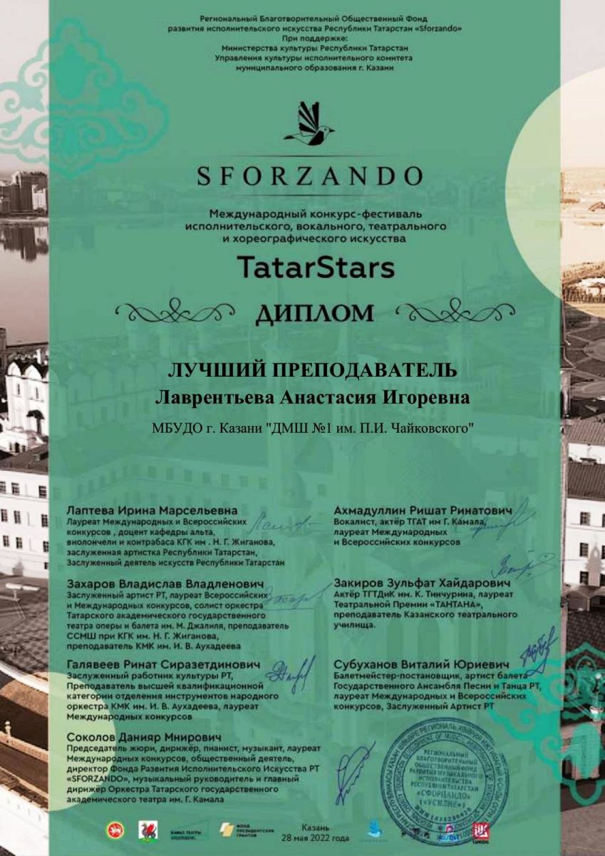 Международный конкурс искусств "Sammer taim" - Зубова О.Б., Лучший концертмейстер;