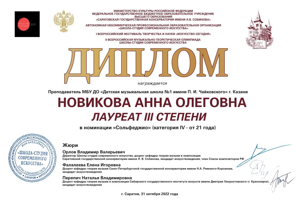 Международный конкурс искусств "Music Forum" - Трояновская В.С., Лауреат I степени;
