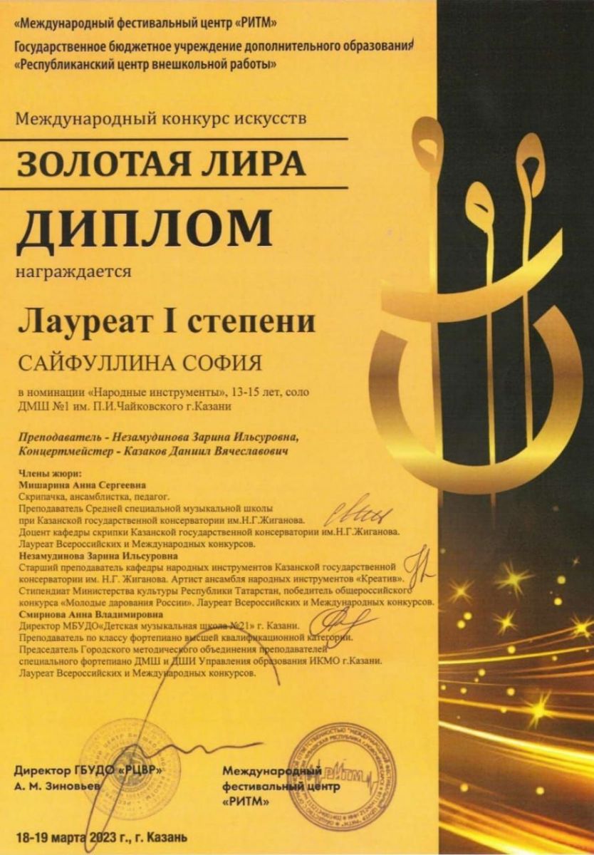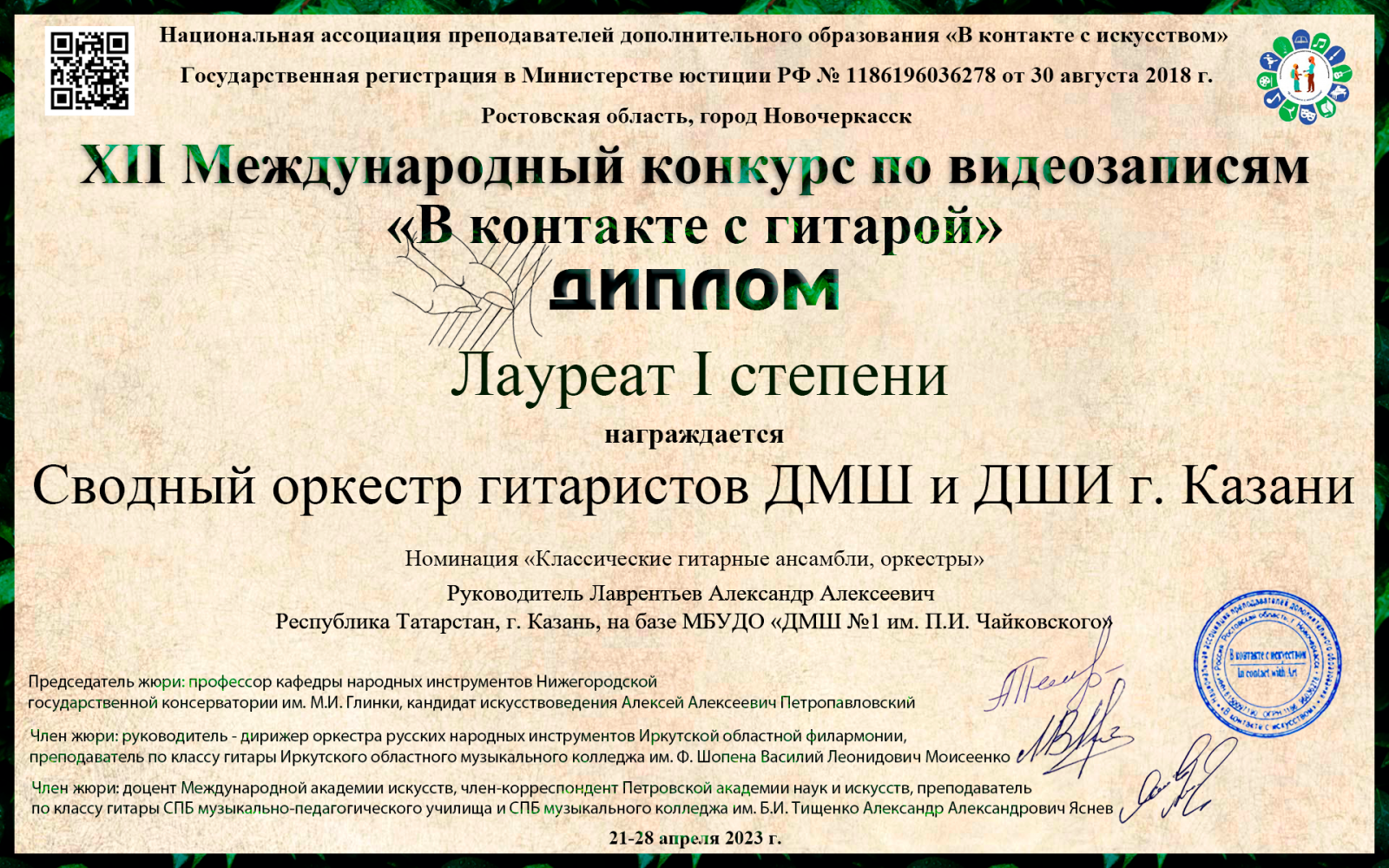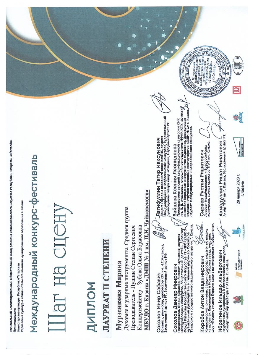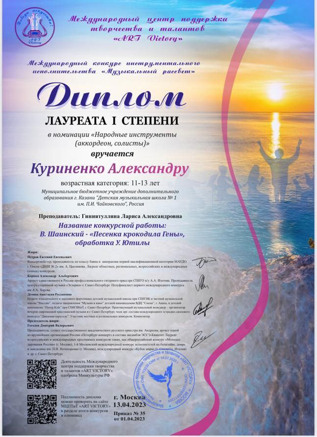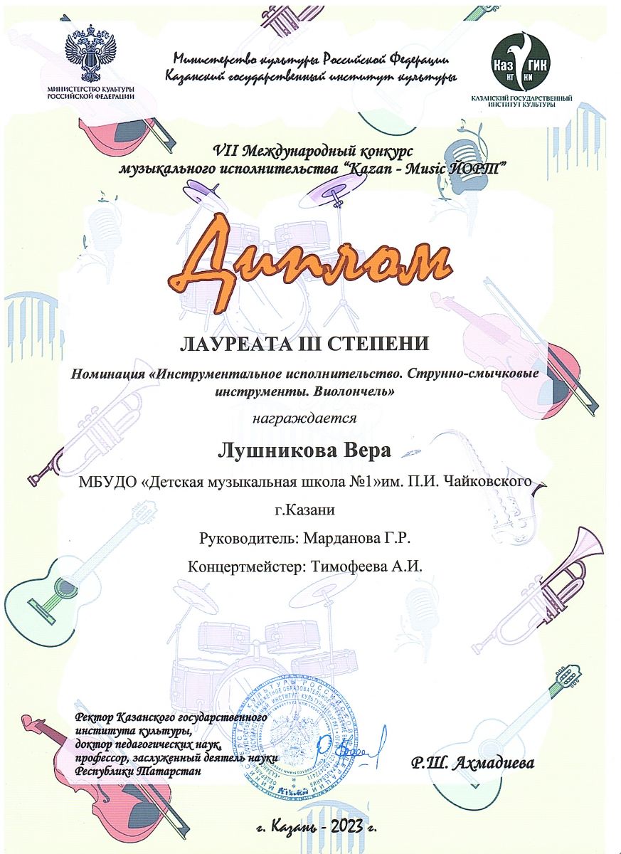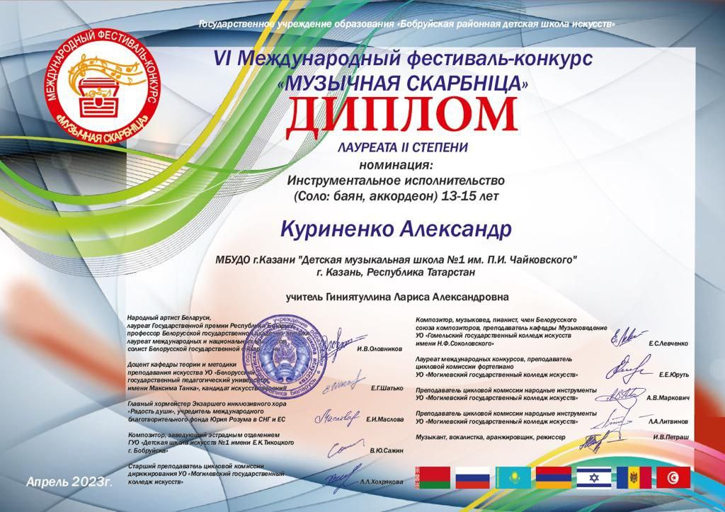II Международный конкурс классического искусства "Симфония весны - 2023" - Канафиев Карим, Лауреат I степени, класс Исхакова Л.Н., концертмейстер Зубова О.Б.;