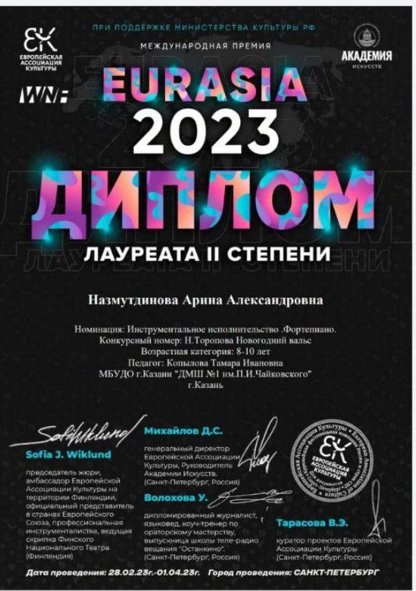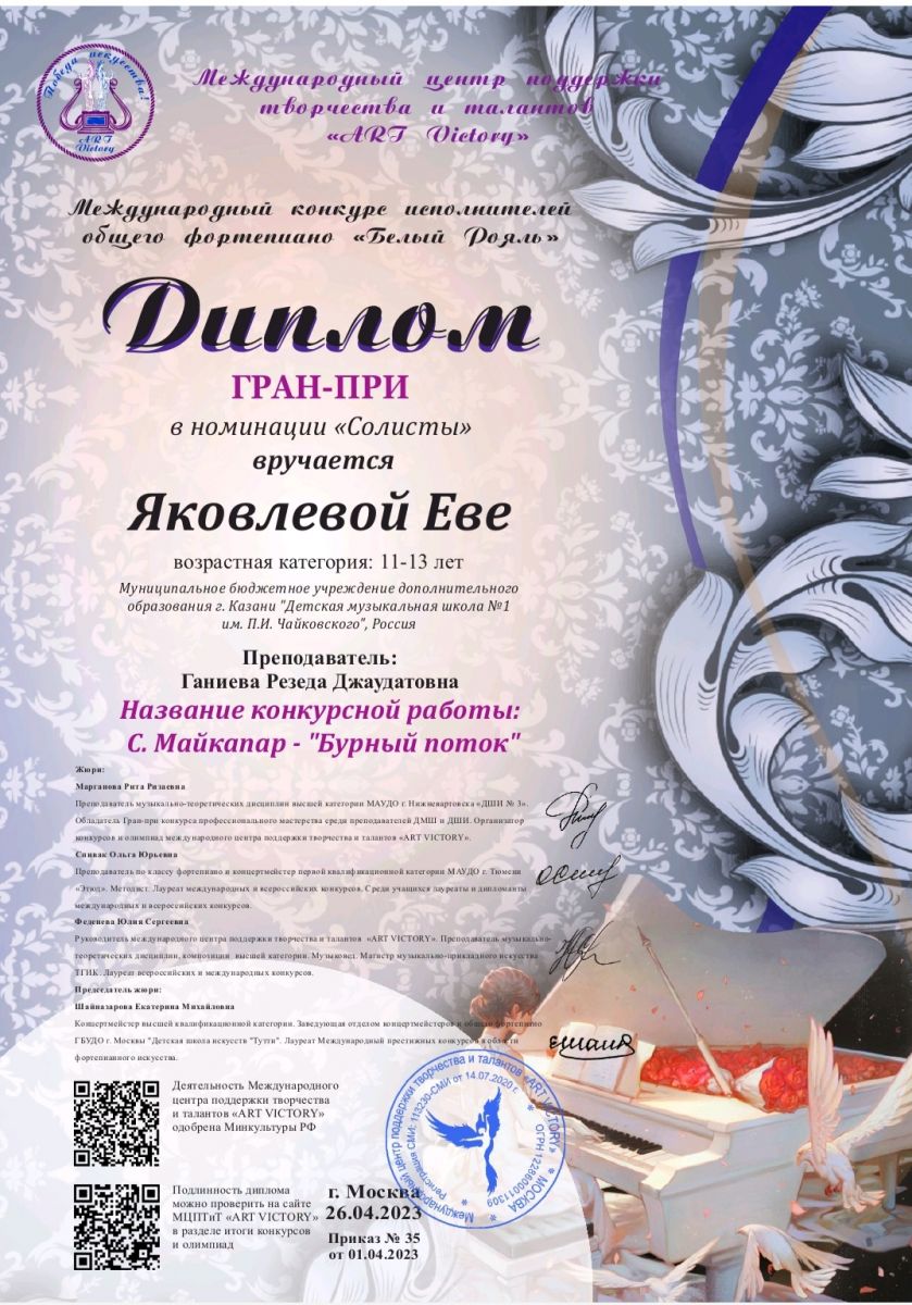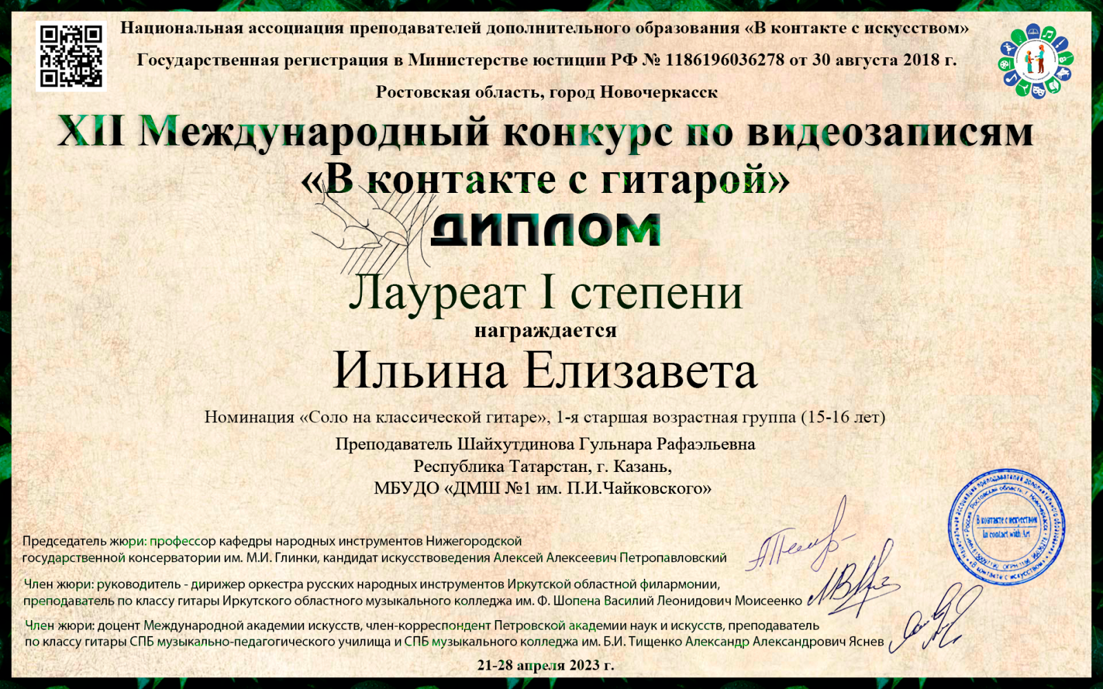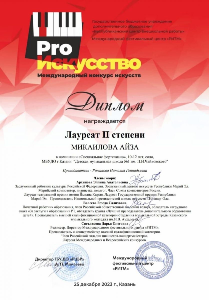 Международный конкурс "Pro Искусство" - Микаилова Айза, Лауреат II степени, класс Романовой Н.Ю.;