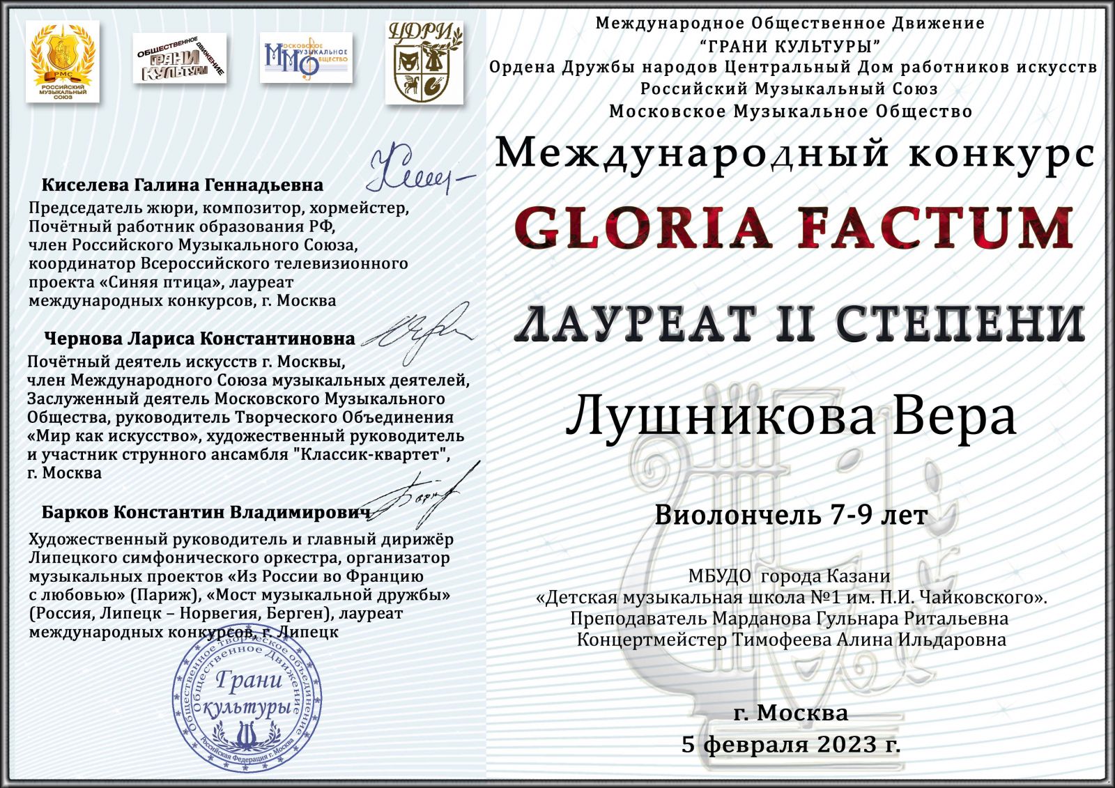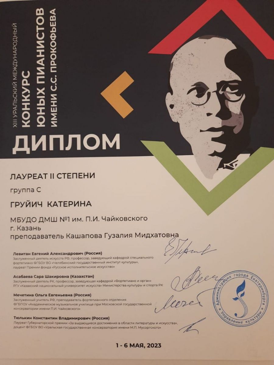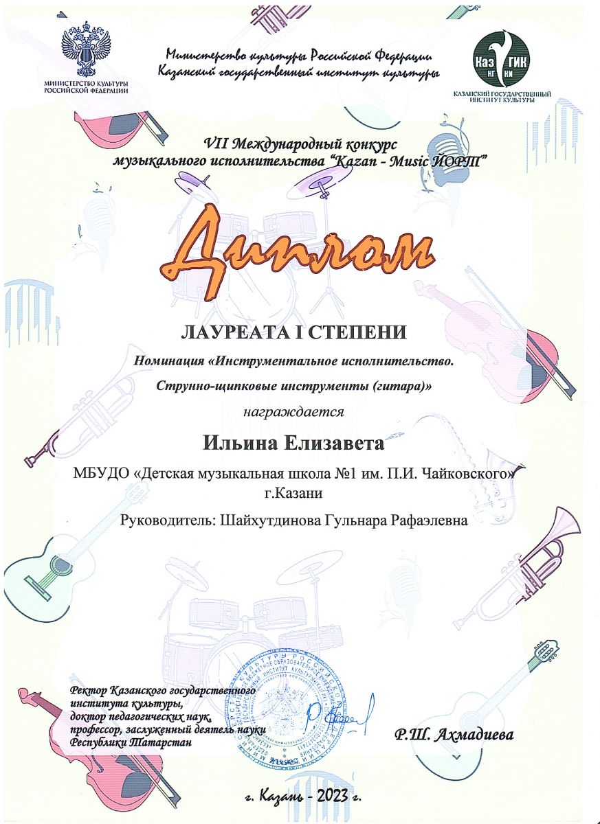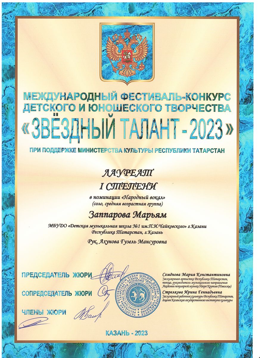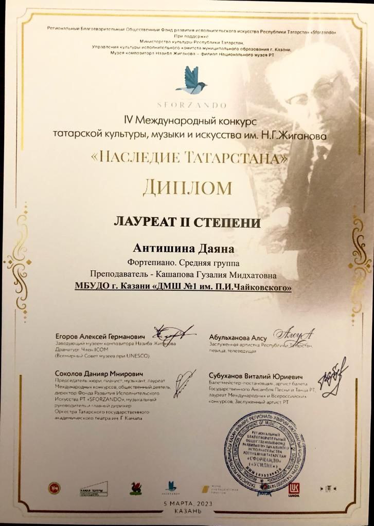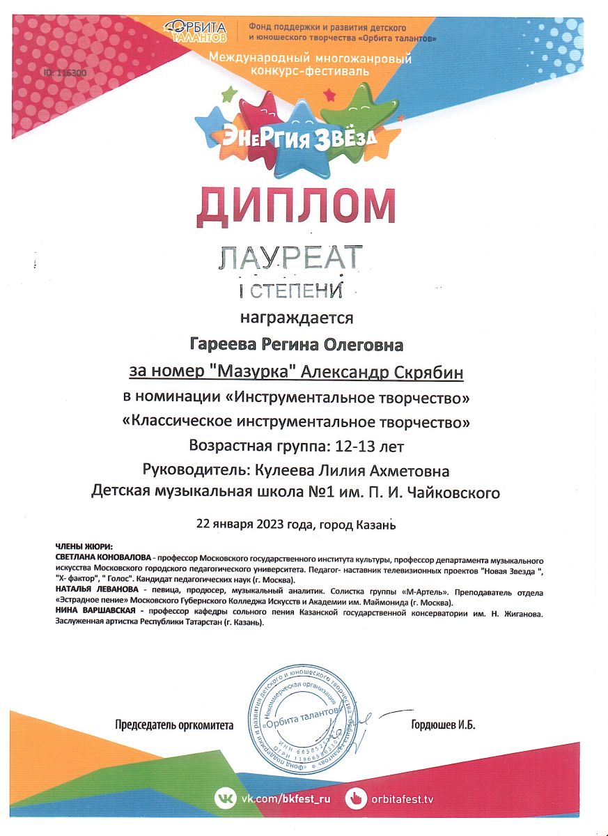 Международный конкурс-фестиваль "Питер Fest" - Гильмутдинова Латифа, Лауреат II степени, класс Сытиковой Н.А., концертмейстер Мирханов Ф.М.;