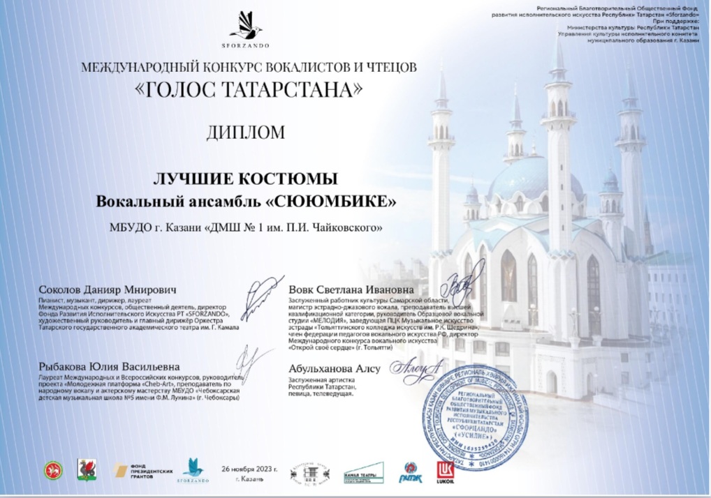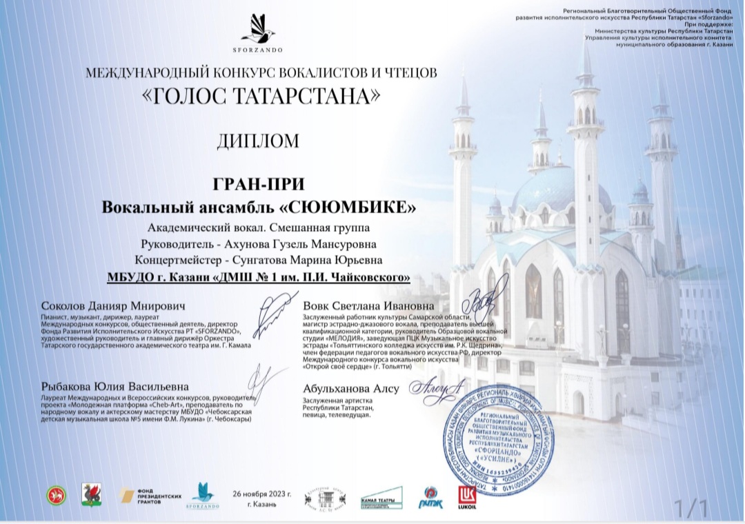 Международный конкурс вокалистов и чтецов "Голос Татарстана" - вокальный ансамбль "Сююмбике", Гран-При, рук. Ахунова Г.М., концертмейстер Сунгатова М.Ю.;