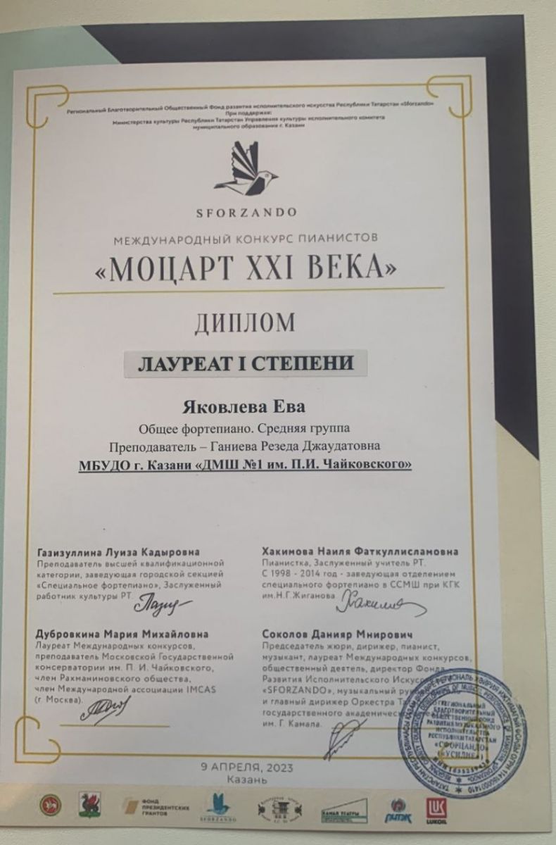 Международная музыкальная премия SFORZANDO - Романова Мария, Лауреат II степени, класс Хакимуллиной Г.Н.;