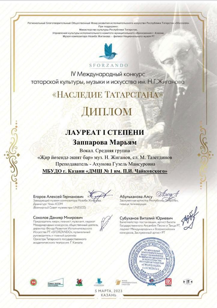 Международный конкурс-фестиваль исполнительского, вокального, театрального и хореографического искусства "TatarStars" - Канафиев Карим, Лауреат I степени, класс Исхакова Л.Н., концертмейстер Зубова О.Б.;