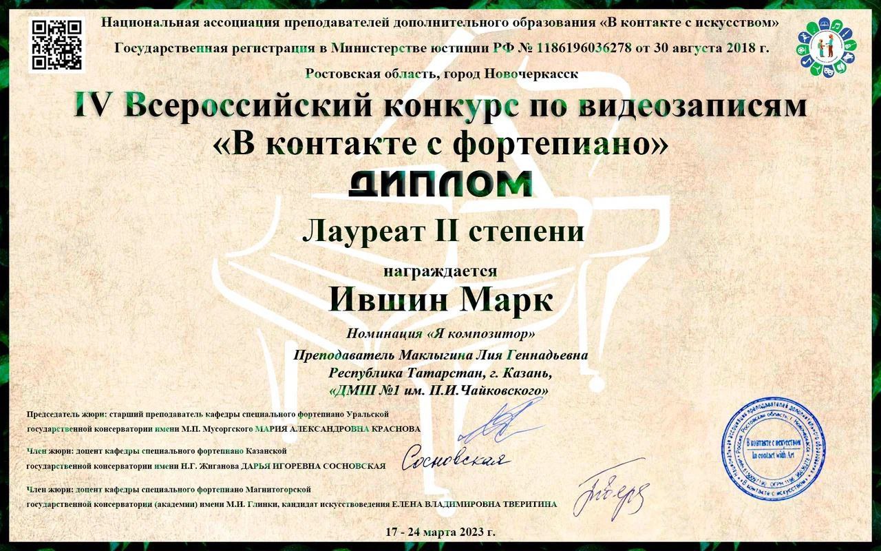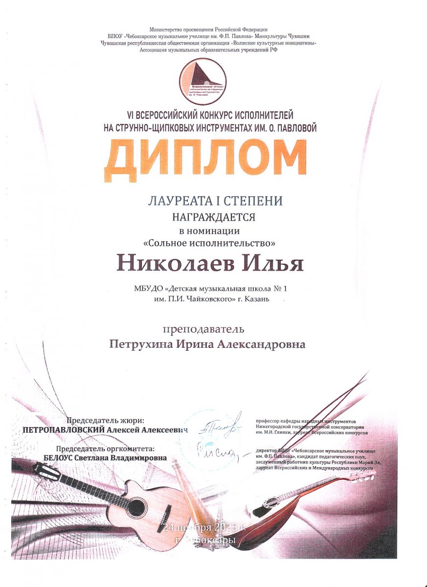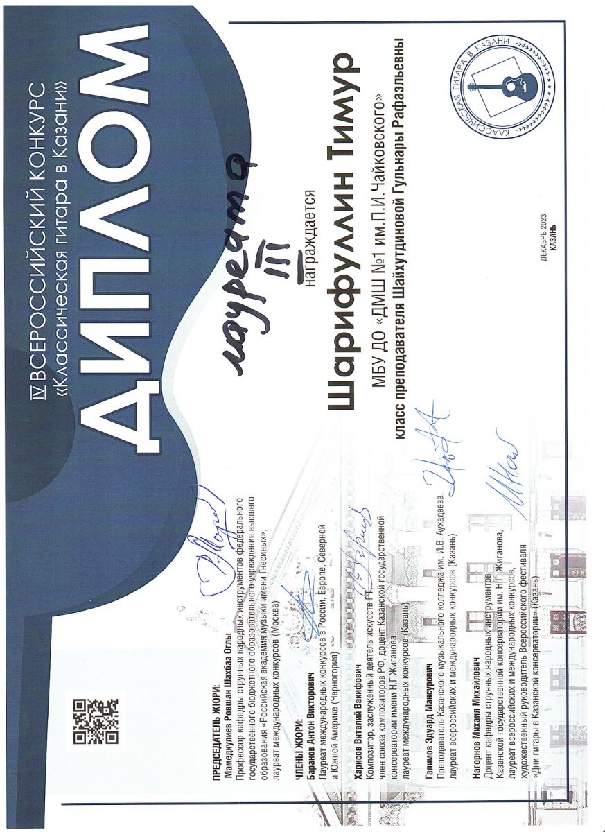 IV Всероссийский конкурс "Классическая гитара в Казани" - Нагорнов Илья, Лауреат III степени, класс Шайхутдиновой Г.Р.;