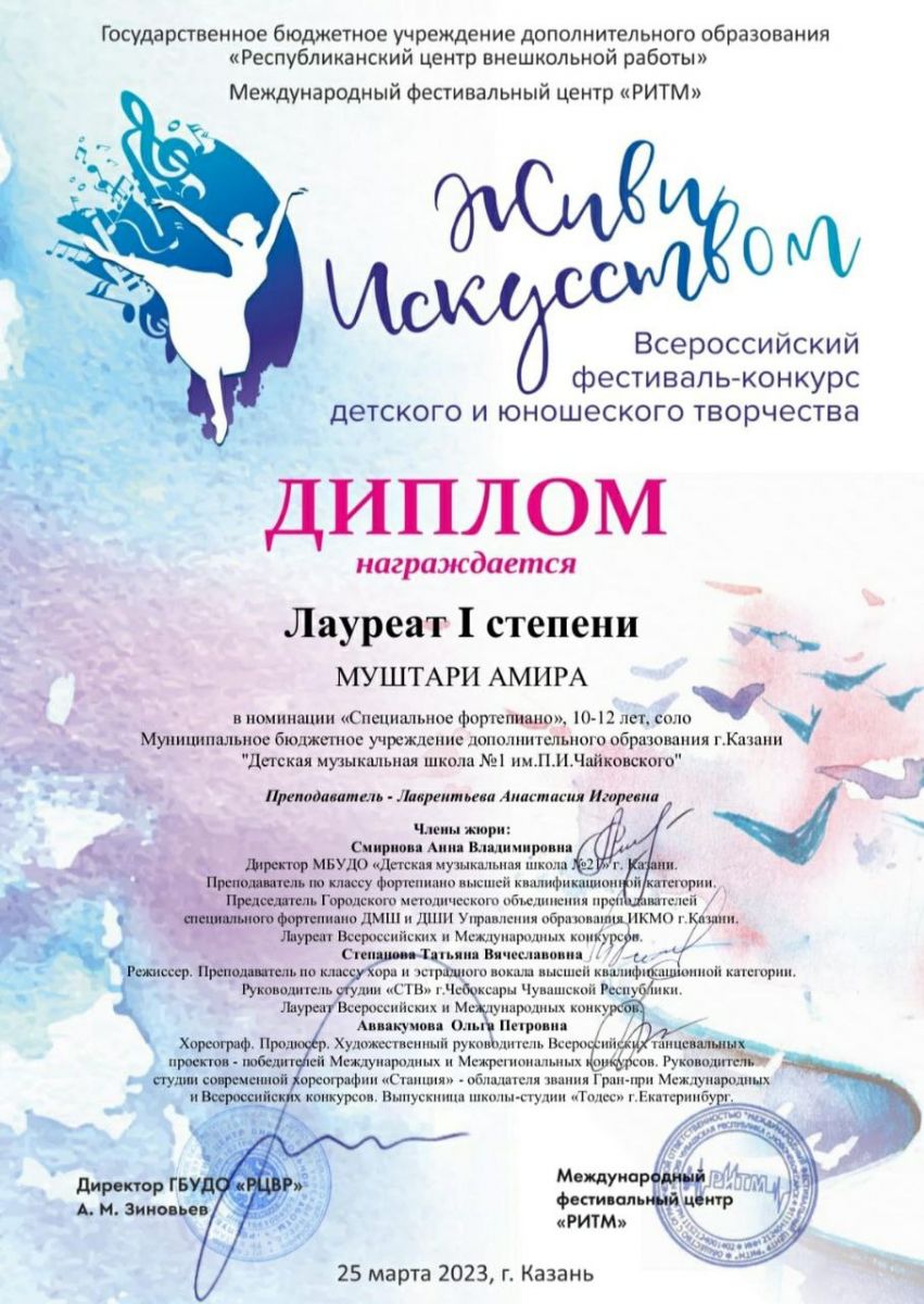 | Короткое название: | МБУДО "Детская музыкальная школа №1 им. П.И. Чайковского" г.Казани |