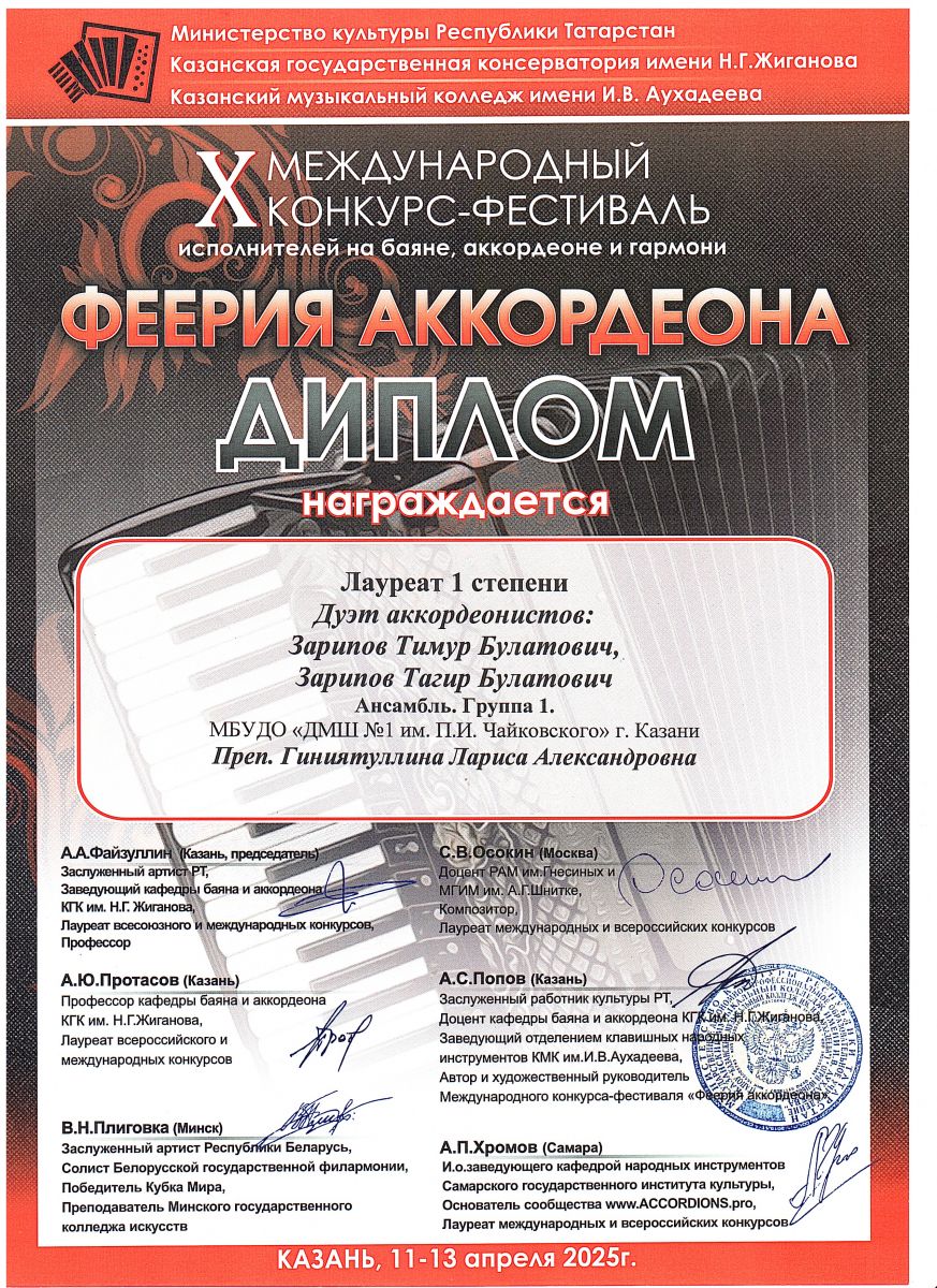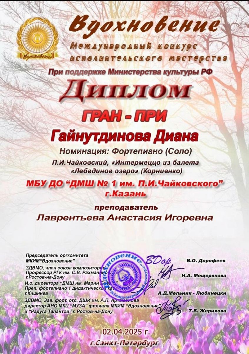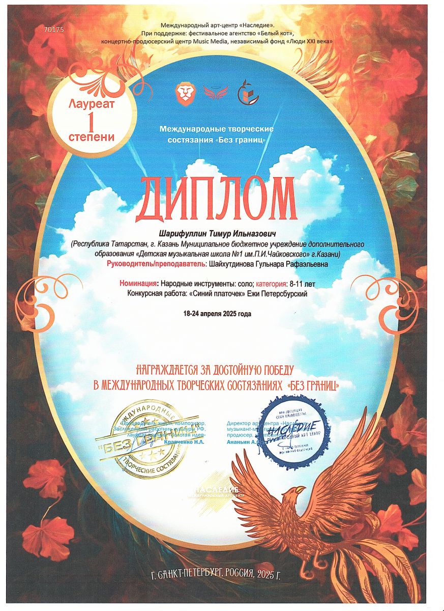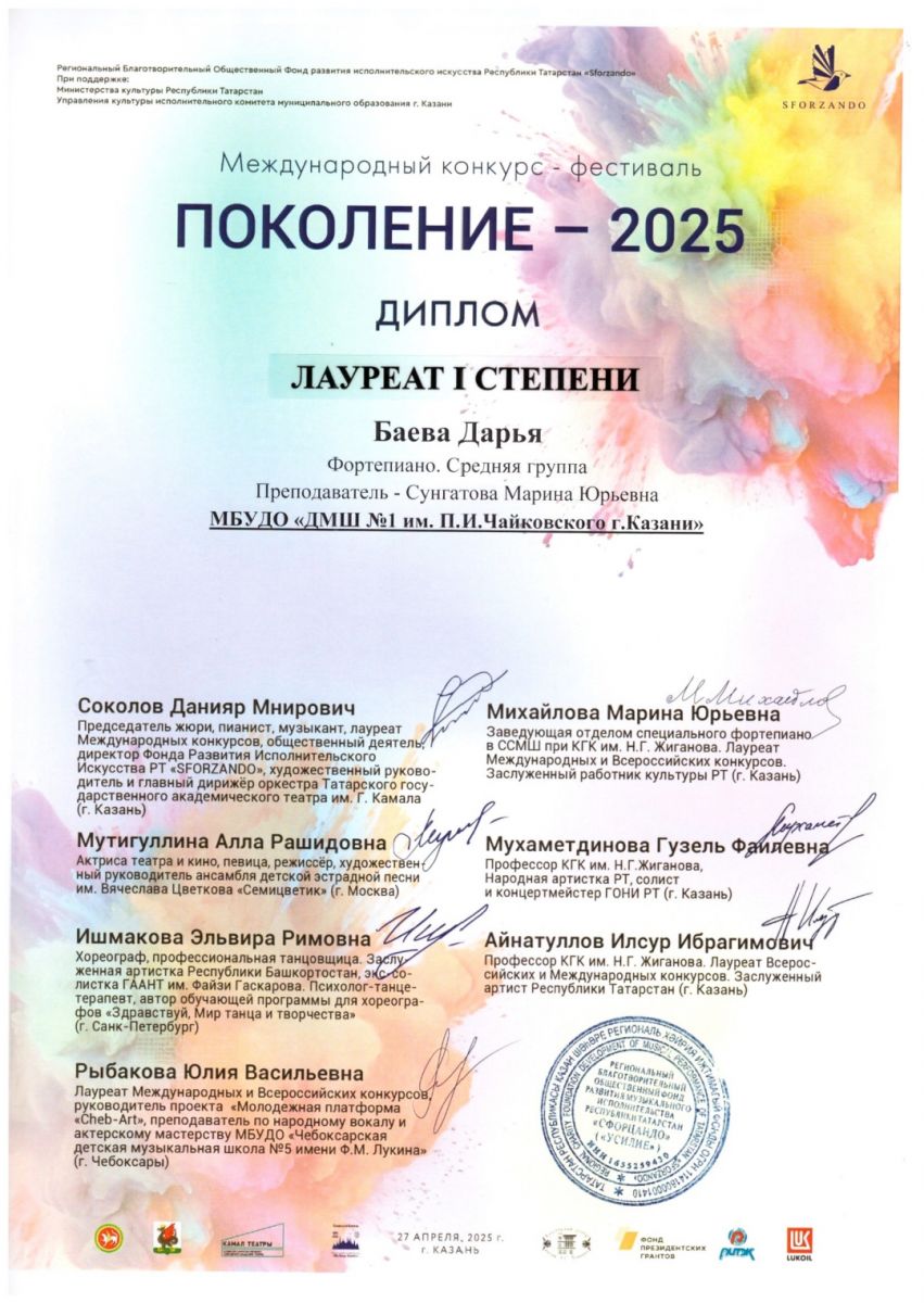 Международная музыкальная премия "Сфорцандо" - Антишина Даяна, Лауреат I степени, класс Кашаповой Г.М.;