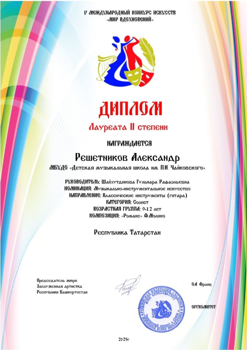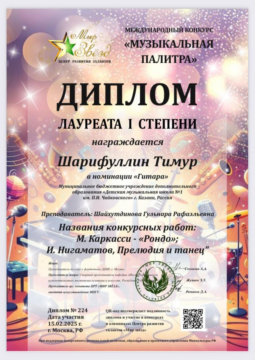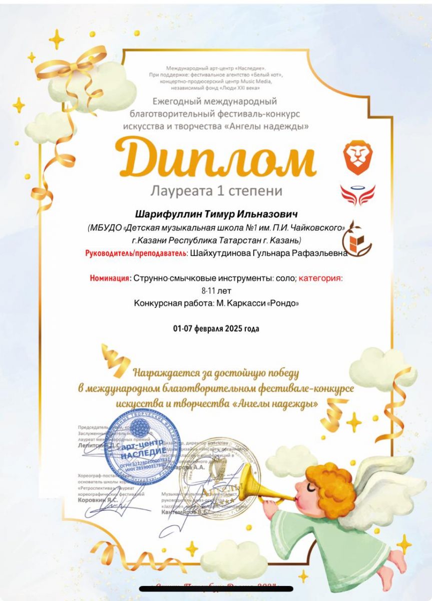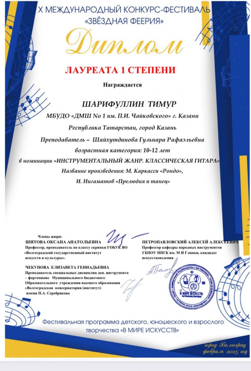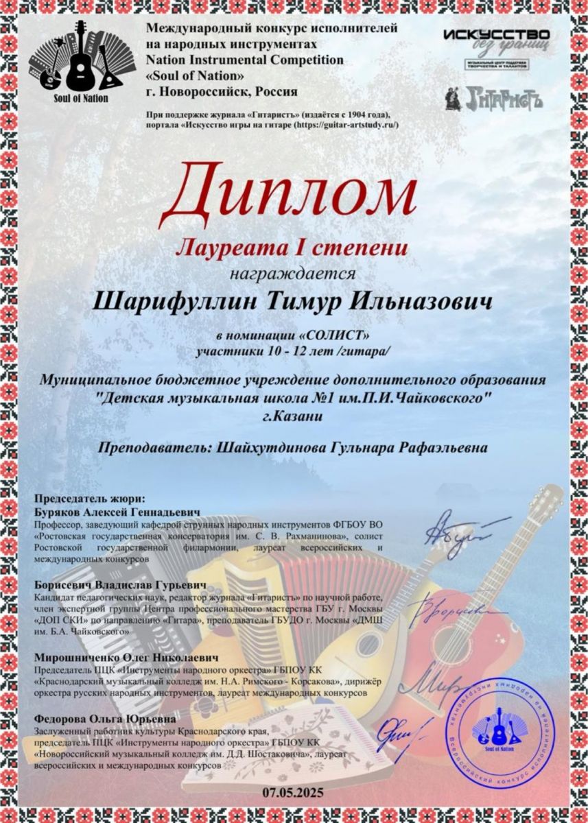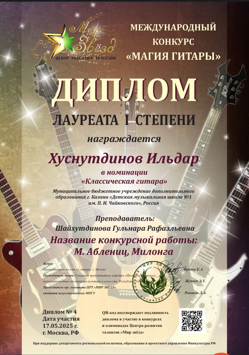 Международный конкурс "Магия гитары" - Хуснутдинов Ильдар, Лауреат I степени, класс Шайхутдиновой Г.Р.;