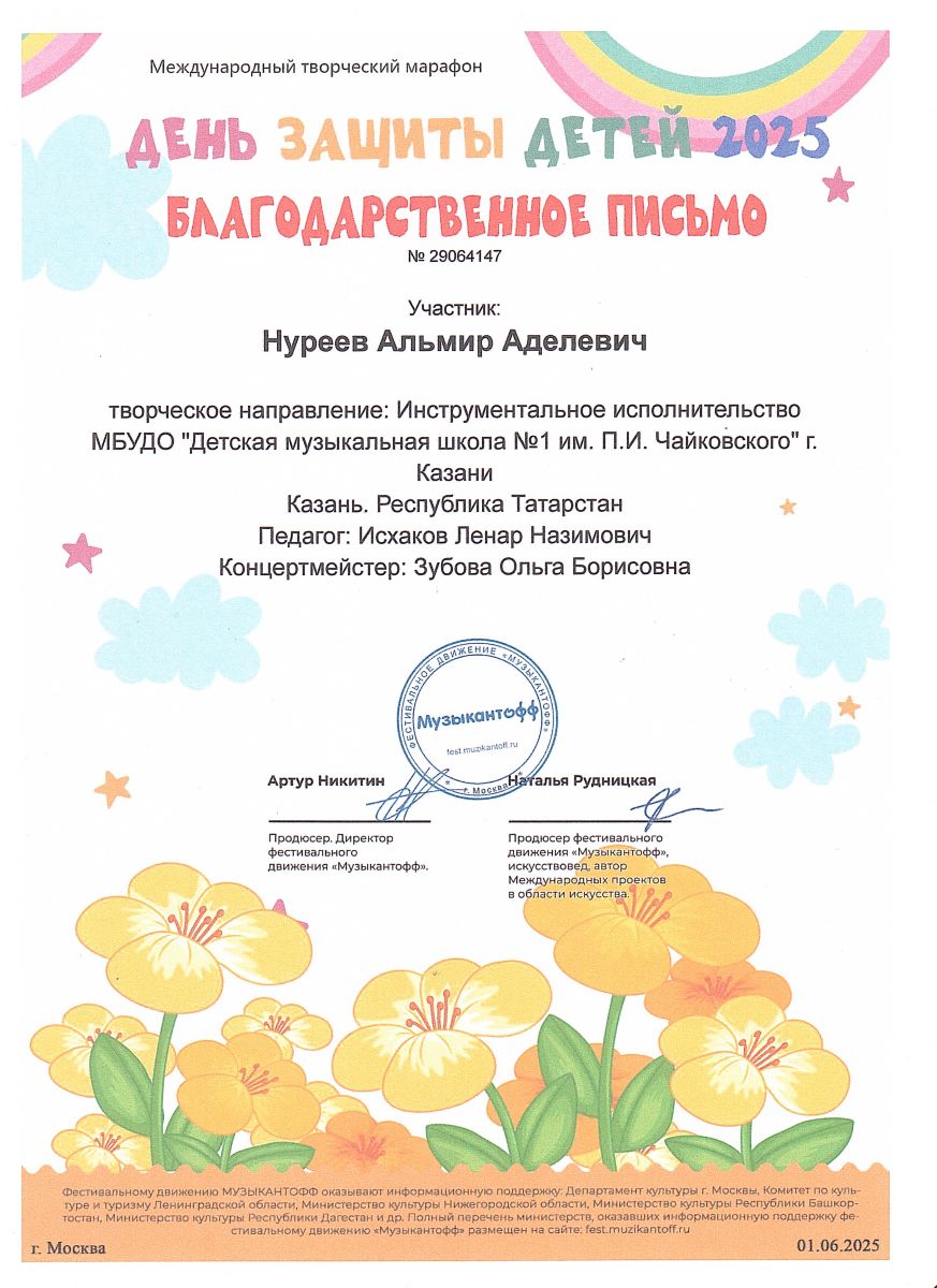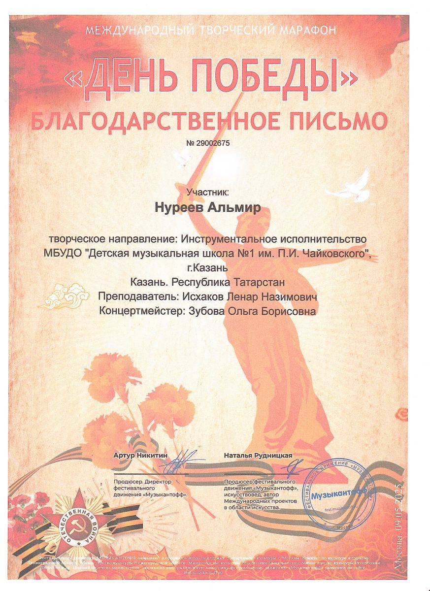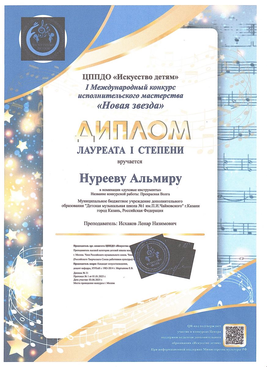 I Международный конкурс исполнительского мастерства "Новая звезда" - Нуреев Альмир, Лауреат I степени, класс Исхакова Л.Н.;
