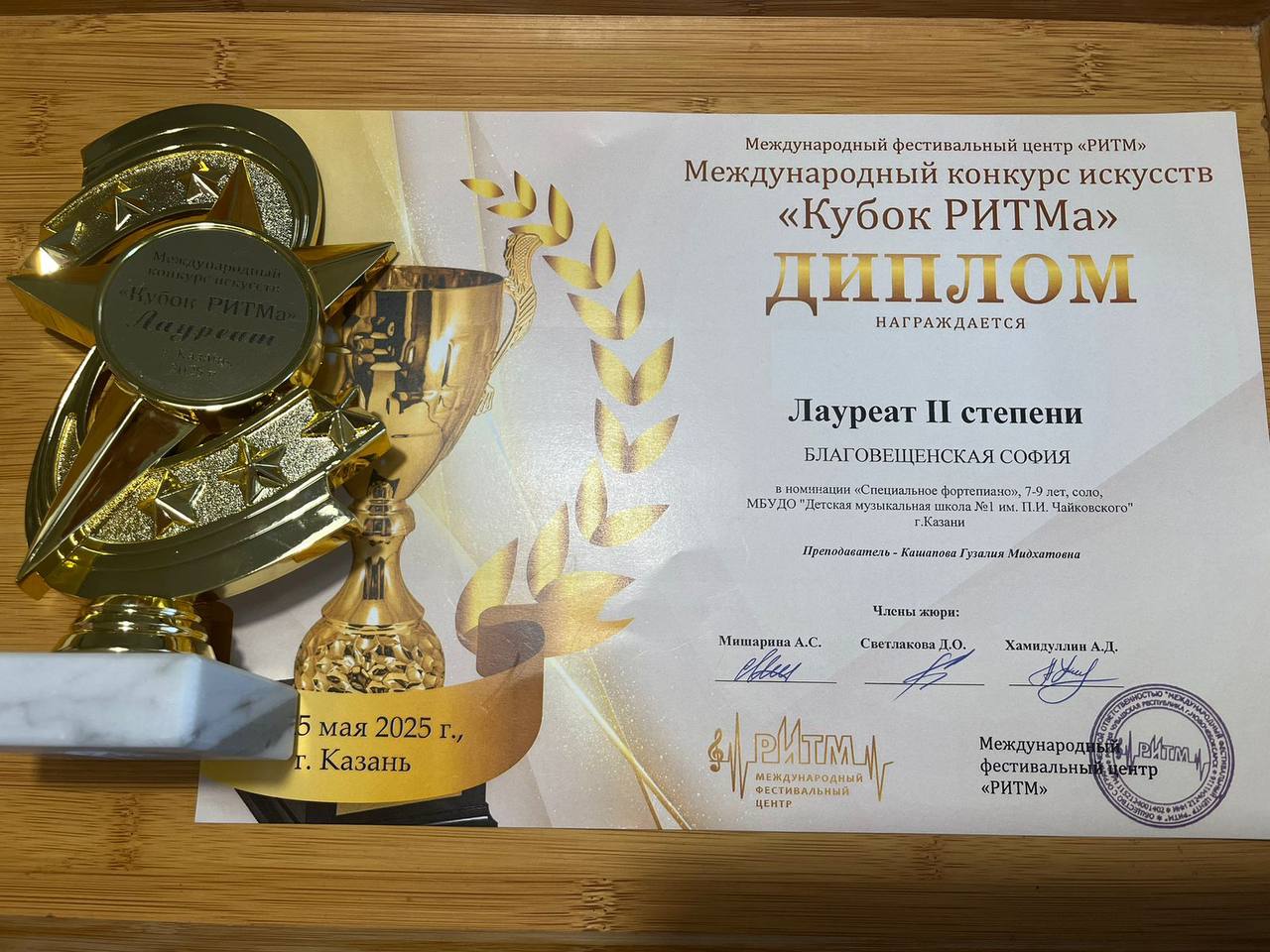 Международный конкурс искусств "Кубок РИТМа" - Благовещенская София, Лауреат II степени, класс Кашаповой Г.М.;