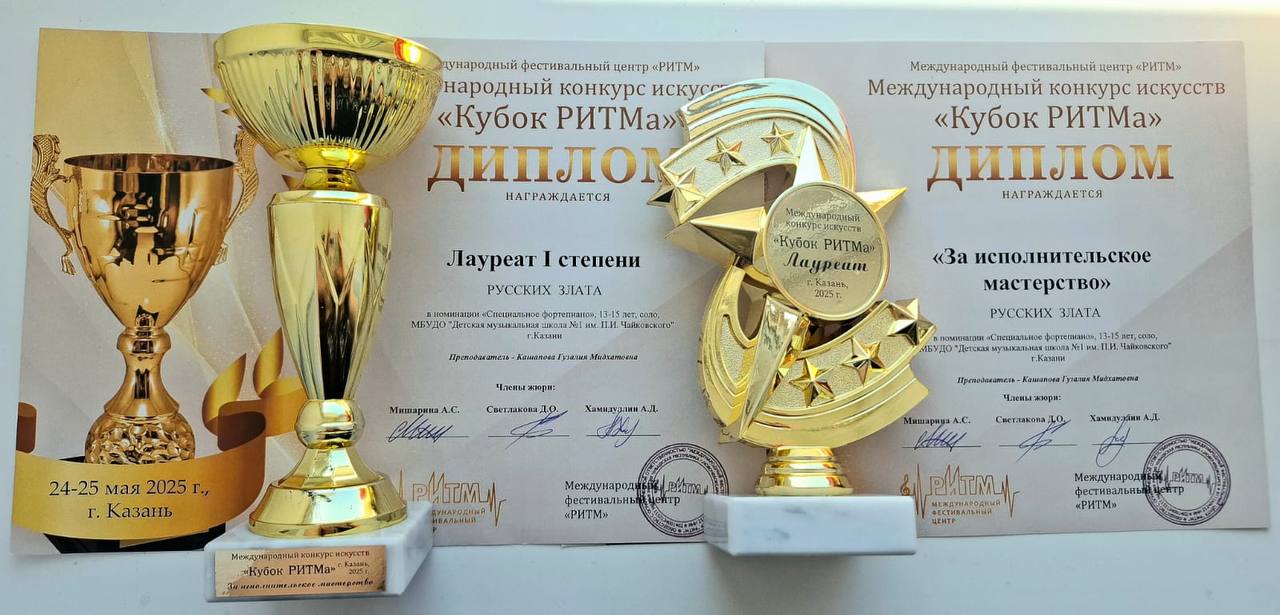 Международный конкурс искусств "Кубок РИТМа" - Русских Злата, Лауреат I степени, Диплом "За исполнителҗское мастерство", класс Кашаповой Г.М.;