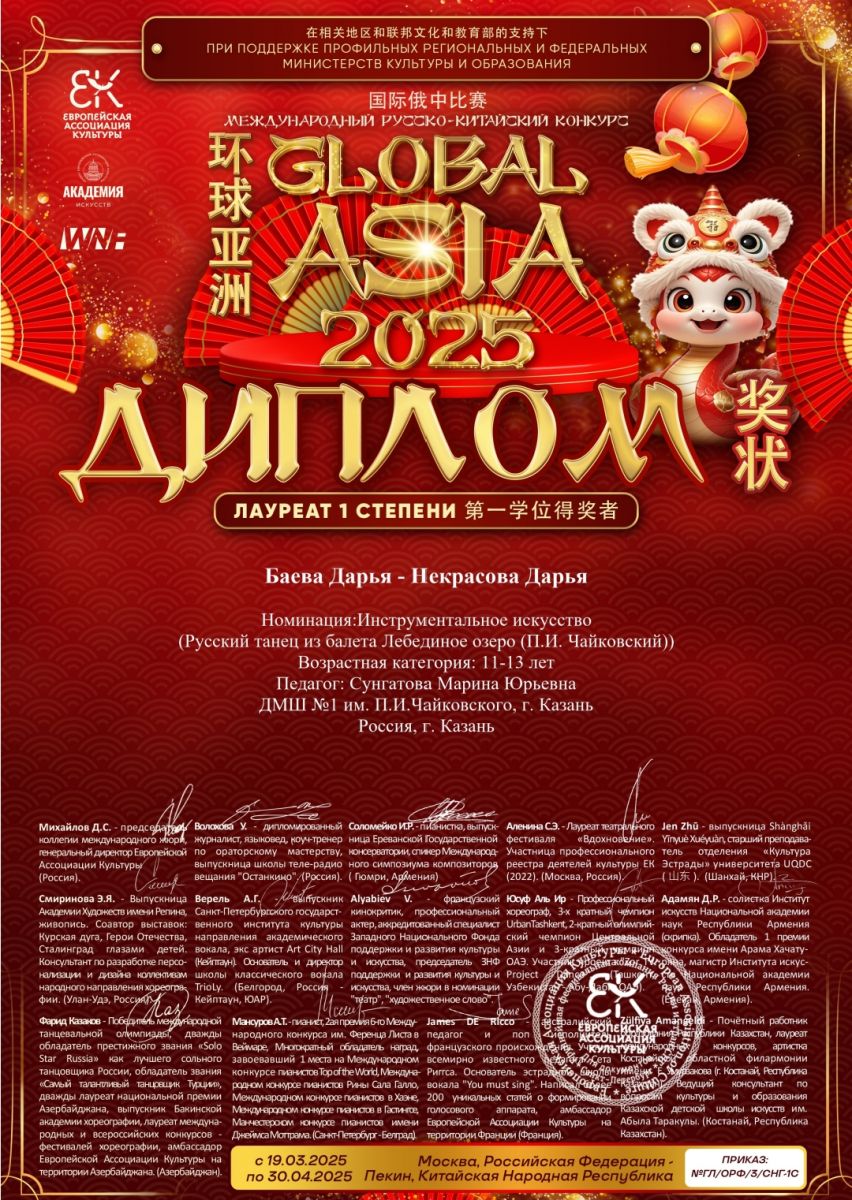 Международный конкурс творческих дарований "Art-платформа" - Баева Дарья- Некрасова Дарья, Лауреаты I степени, класс Сунгатовой М.Ю.;