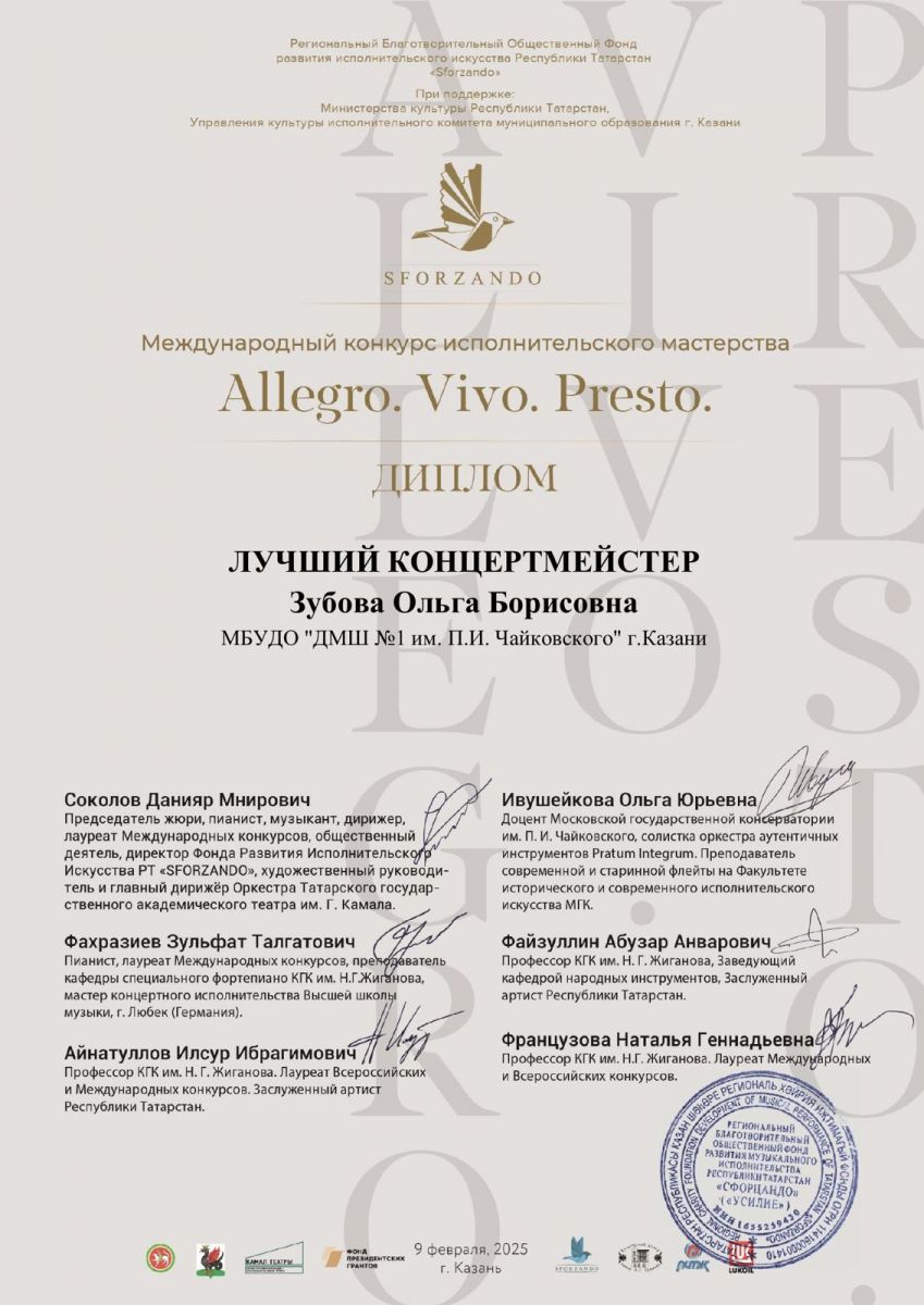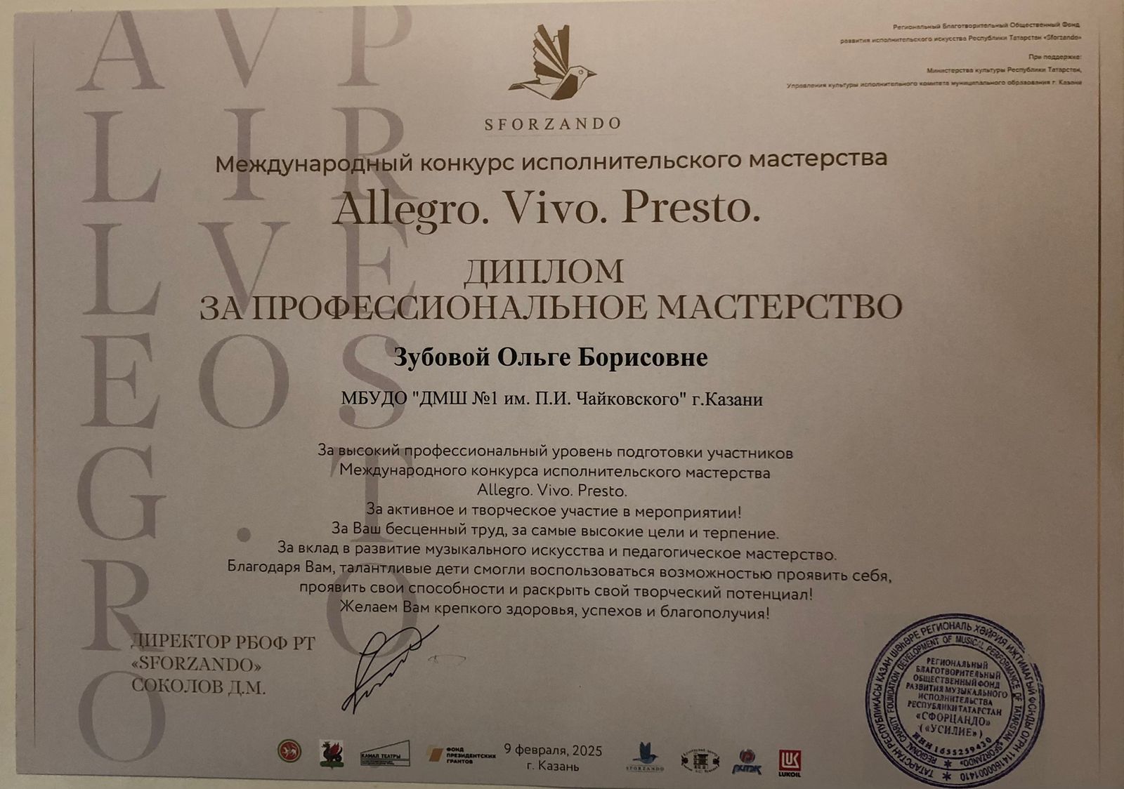 IV Всероссиский конкурс искусств "Сфорцандо" - Диплом за профессиональное мастерство Абызовой Д.М.;