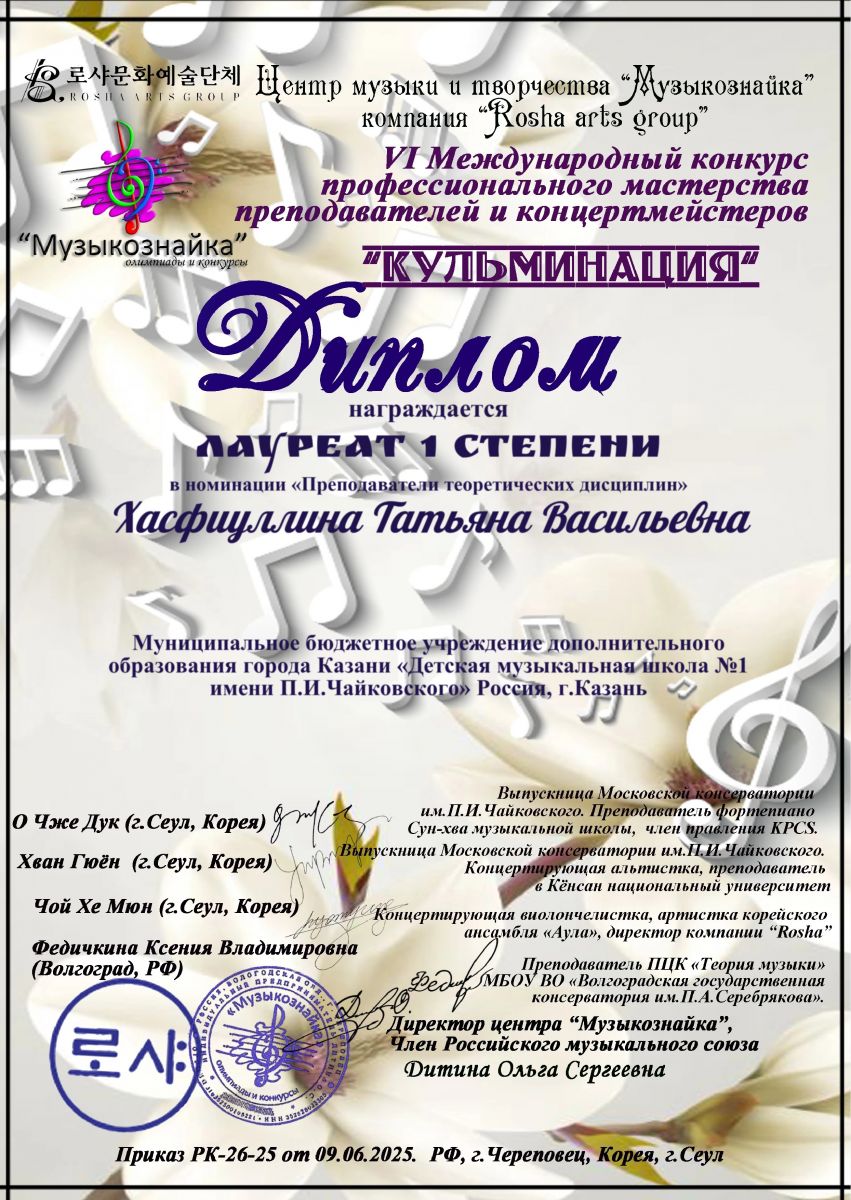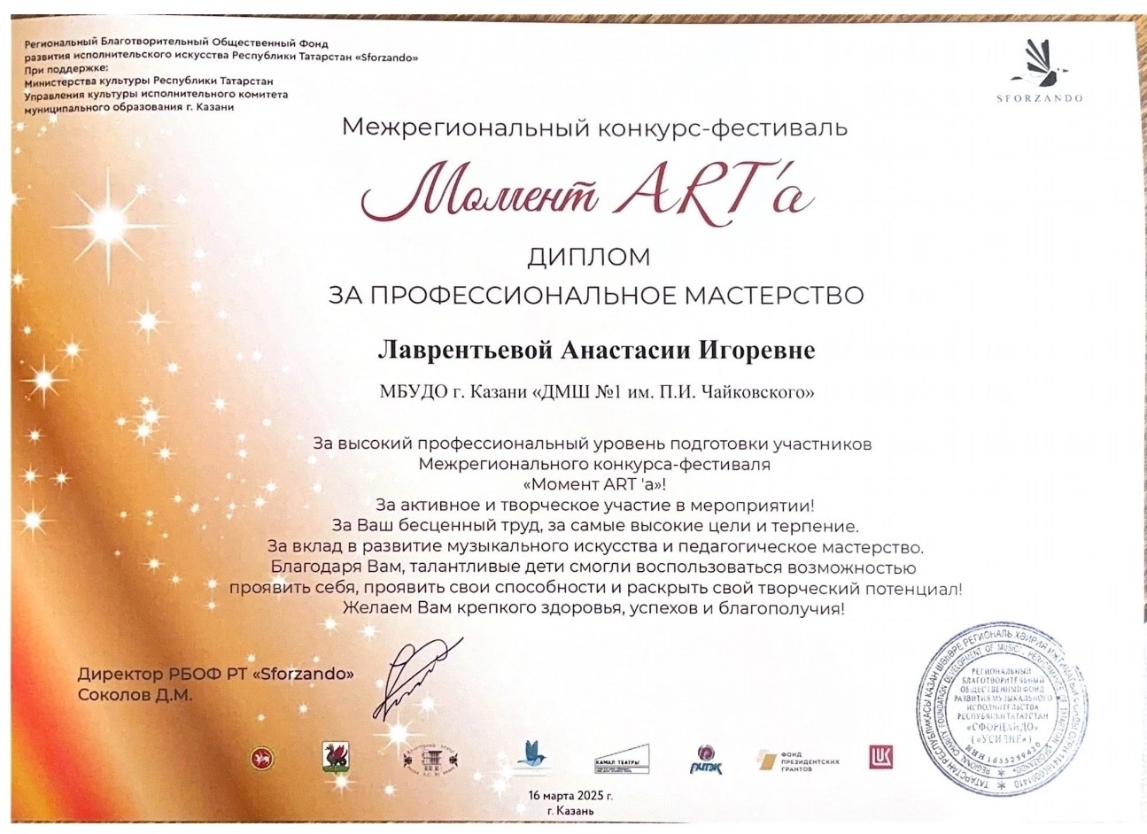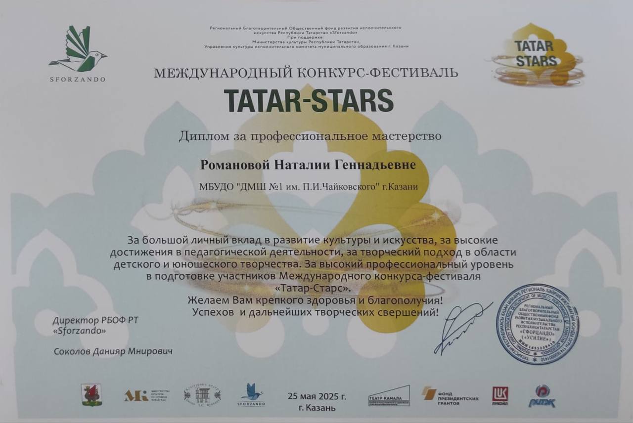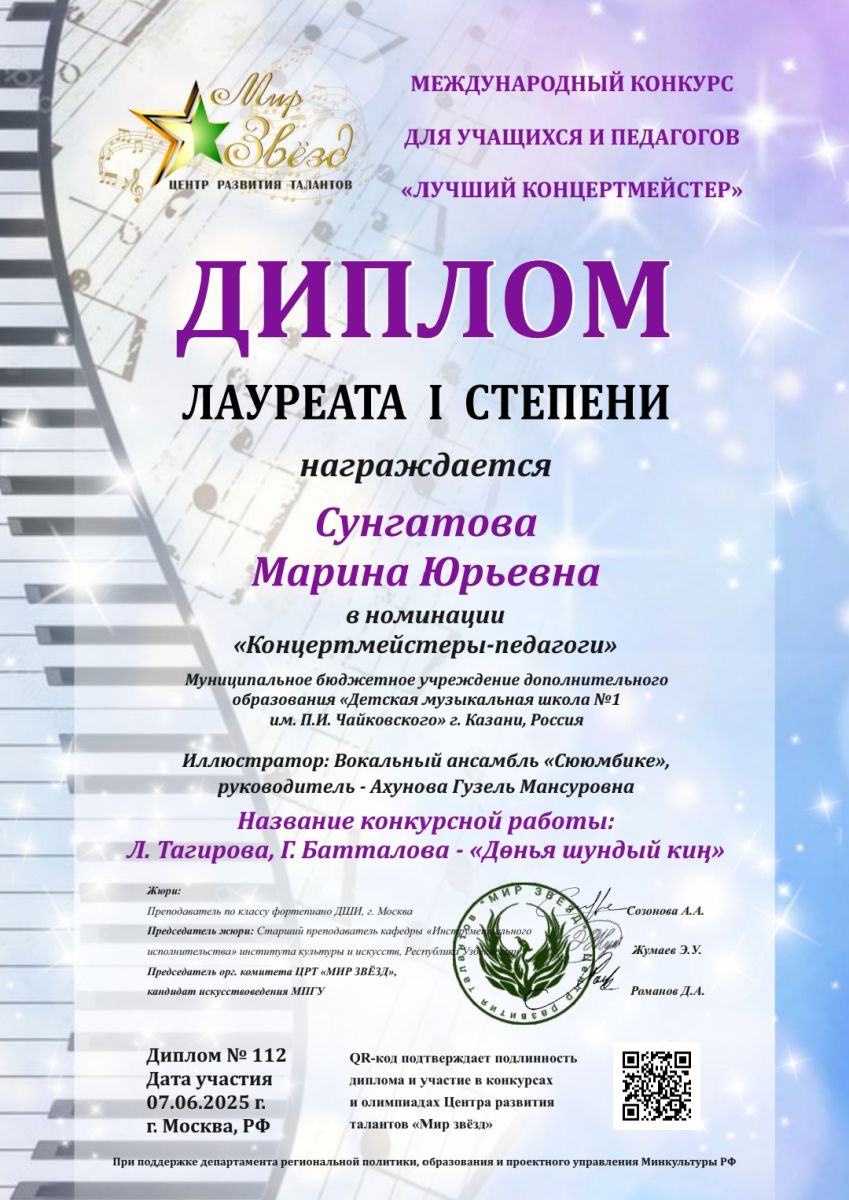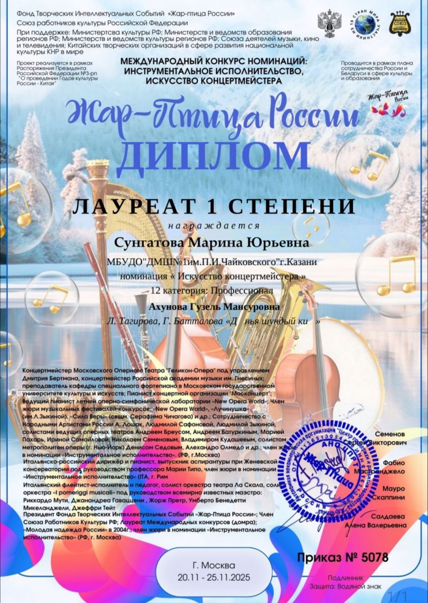 Международный конкурс-фестиваль "Поколение-2025" - Диплом Сунгатовой М.Ю.;