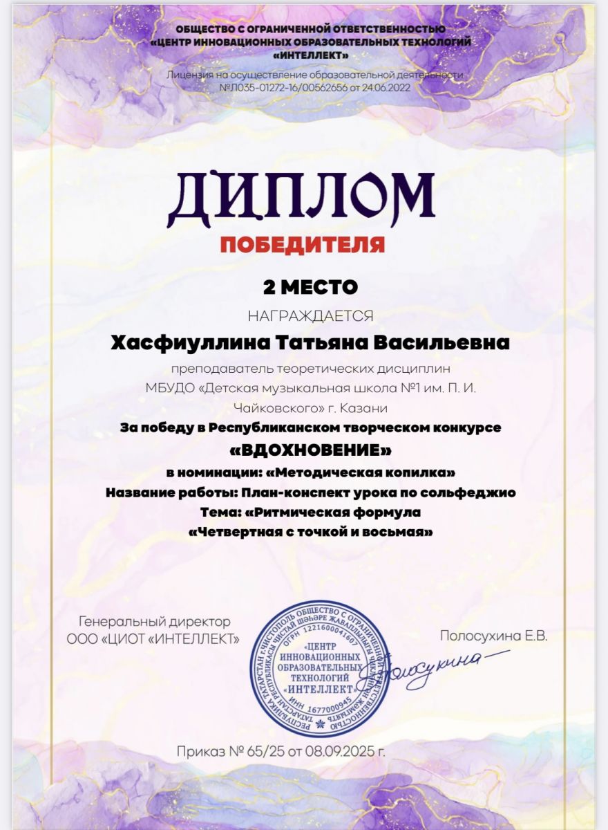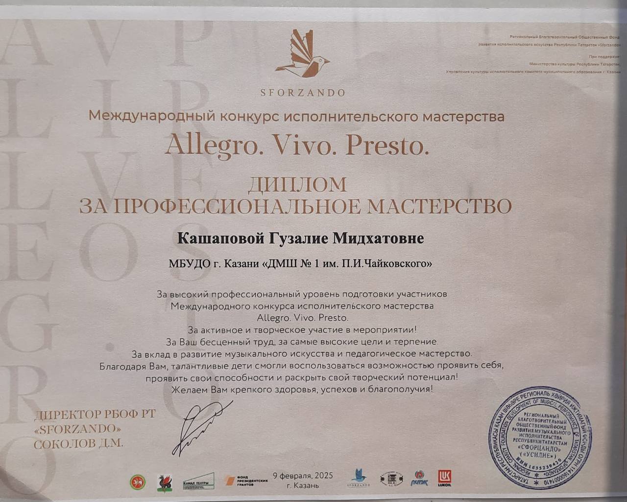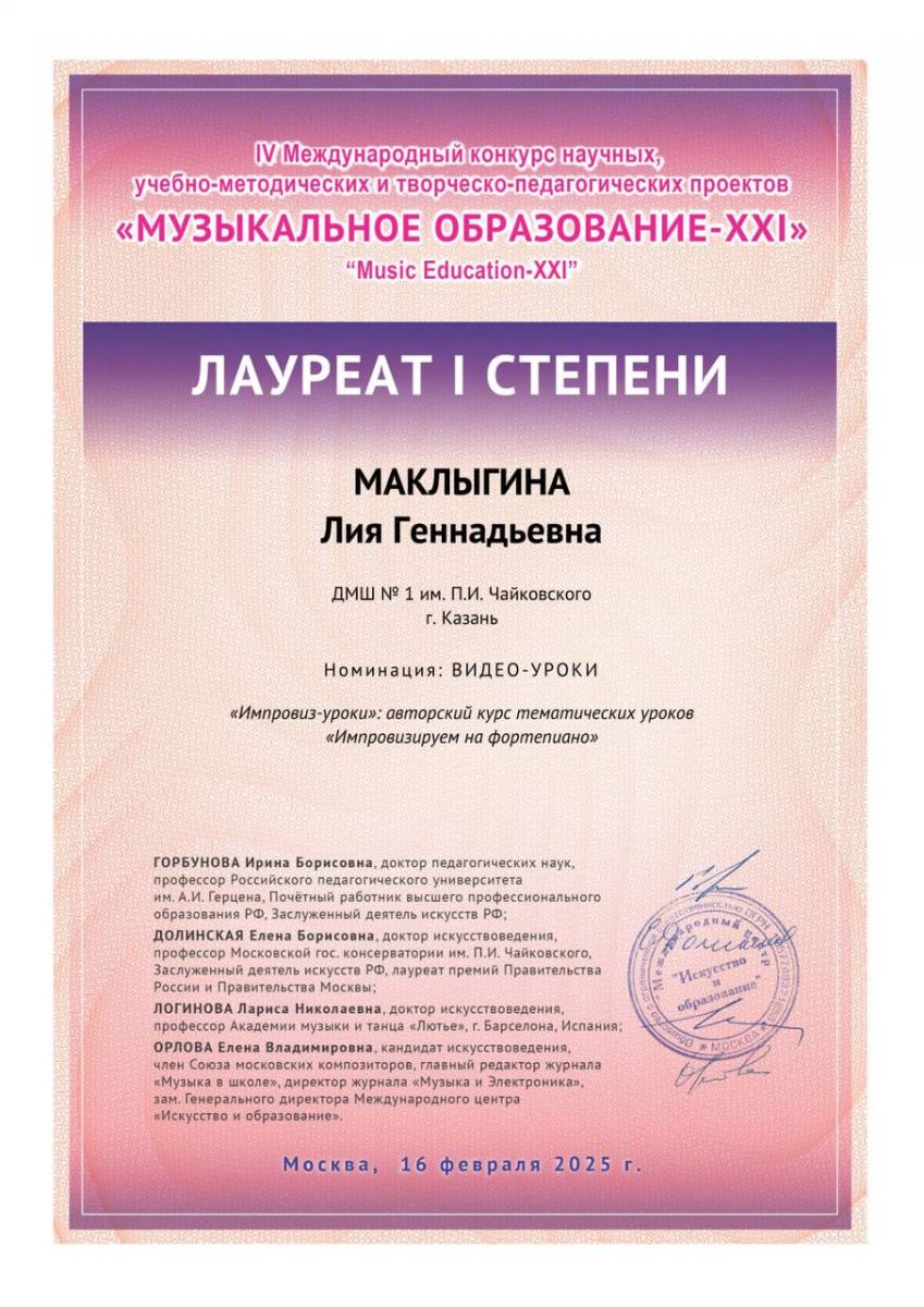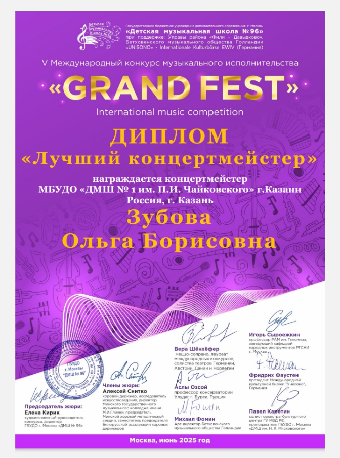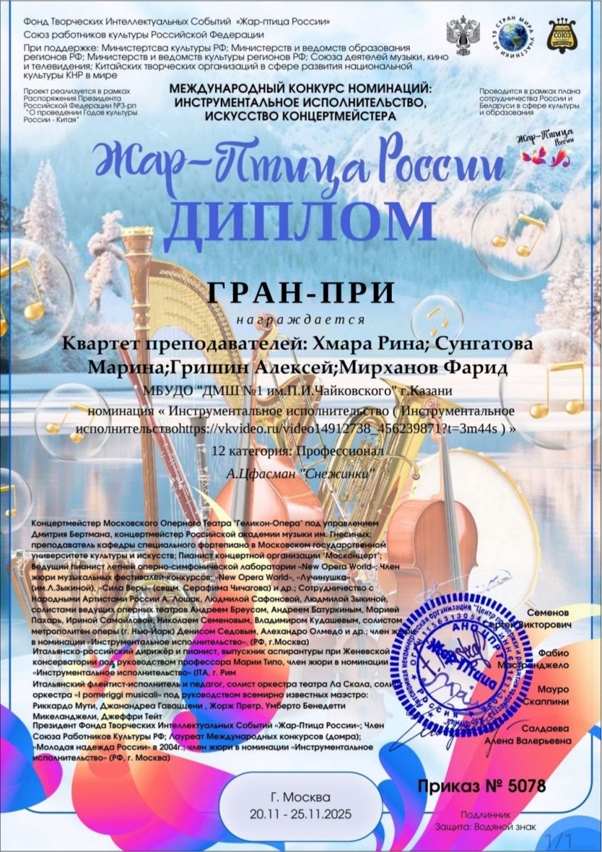 Международный конкурс-фестиваль "Поколение-2025" - Диплом Сунгатовой М.Ю.;