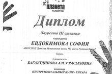 Поздравляем Евдокимову Софию - Лауреата III степени (преподаватель Багаутдинова А.Р.)