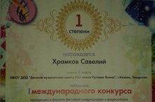 Поздравляем победителей I Международного дистанционного конкурса "Вокал и музыка" Лауреатами I степени стали: Храмков Савелий педагог Невзорова Л.М., Гимадеева Чулпан педагог Валеева Г.З., Шамеева дИляра и Кадырова Камилла педагоги Абдуллина Г.Ш. и Невзорова Л.М., Шувалова Наталья педагог Невзорова Л.М.